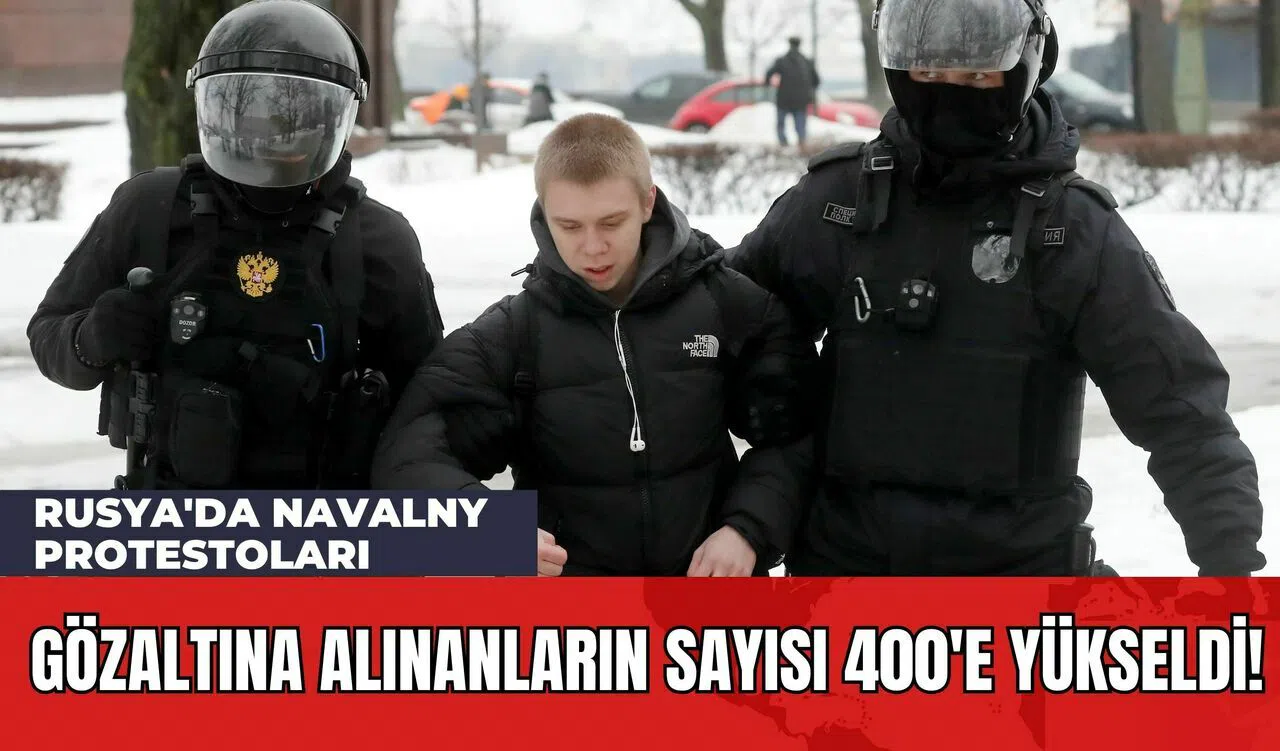 Rusya'da muhalif lider Alexei Navalny'nin Cuma günü tutuklu bulunduğu cezaevinde hayatını kaybetmesinin ardından ülke genelinde düzenlenen protesto gösterileri devam ediyor. Navalny destekçilerinin organize ettiği protestolarda gözaltına alınanların sayısı 400'e yükseldi. OVD-Info protesto izleme grubu tarafından yapılan açıklamaya göre, en yoğun gözaltıların Navalny destekçilerinin bulunduğu St. Petersburg ve Moskova'da gerçekleştiği belirtiliyor. Özellikle St. Petersburg'da 200'den fazla kişinin gözaltına alındığı bildiriliyor.