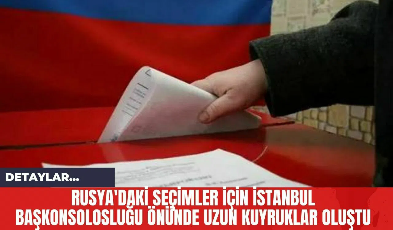 Rusya'da 15 - 17 Mart tarihleri arasında gerçekleşecek olan başkanlık seçimleri yaklaşırken, Türkiye'deki Rusya vatandaşları da oy kullanmak üzere İstanbul Başkonsolosluğu'na akın ediyor. Seçim heyecanıyla dolu olan vatandaşlar, konsolosluk önünde uzun kuyruklar oluşturdu.
