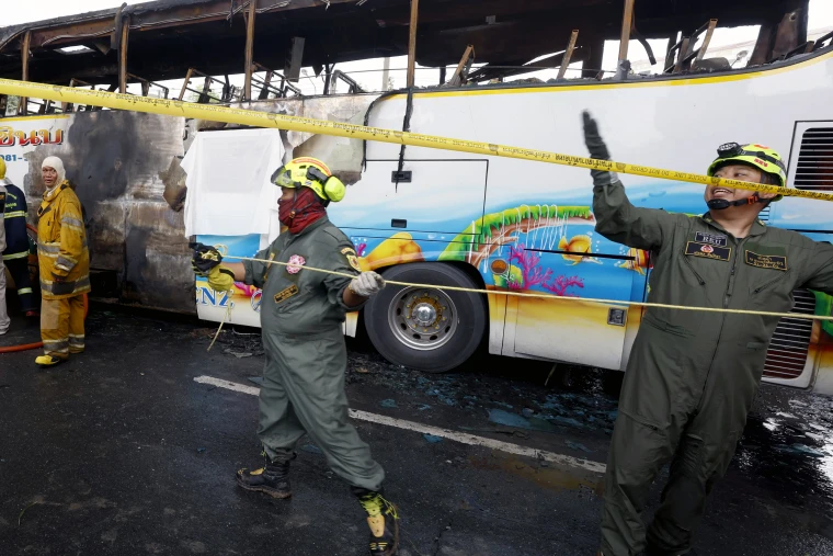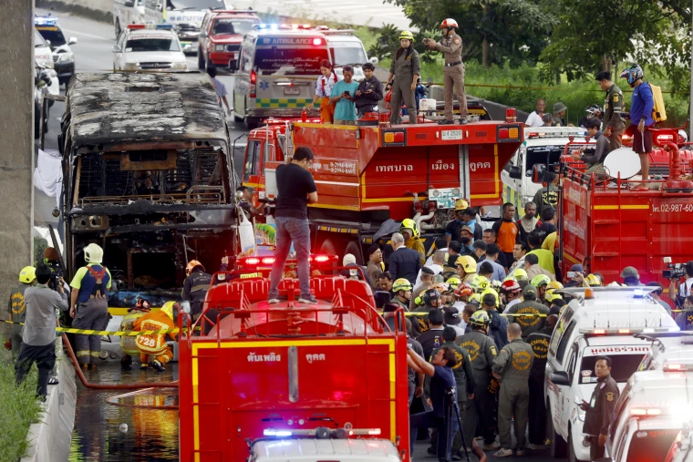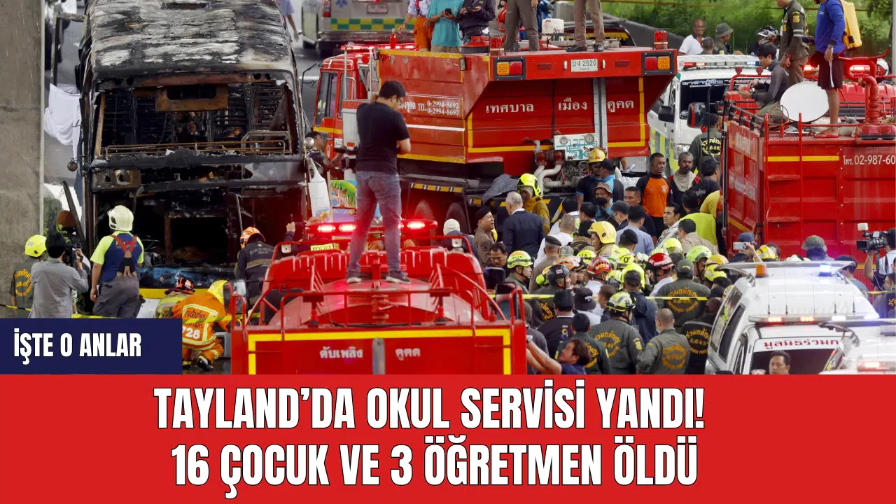 Tayland’ın Pathum Thani eyaletinde meydana gelen trajik olayda, anaokulu öğrencilerini taşıyan bir okul servisi alev aldı. Yerel saatle 12.20'de otoyolda seyir halindeyken çıkan yangında, araçtaki 16 çocuk ve 3 öğretmen hayatını kaybetti. Çocukların 4-5 yaşlarında olduğu ve olay anında otobüsten kaçamayanların alevler arasında kaldığı belirtildi.