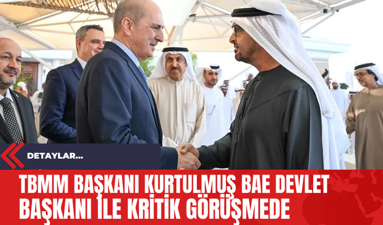 Türkiye Büyük Millet Meclisi (TBMM) Başkanı Numan Kurtulmuş, Birleşik Arap Emirlikleri'nde (BAE) ziyaretlerine devam ediyor. Başkan Kurtulmuş, başkent Abu Dabi'de Kasr Al Bahar'da BAE Devlet Başkanı Şeyh Mohamed Bin Zayed Al Nahyan ile bir araya geldi. Görüşme, ikili ilişkilerin yanı sıra bölgesel ve küresel konuları da kapsayan önemli bir platform oldu.