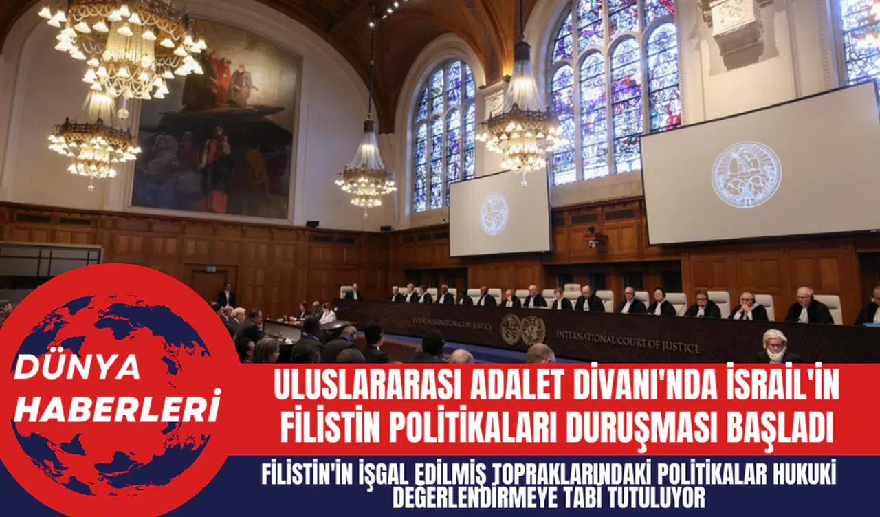 Hollanda'nın Lahey kentinde bulunan Uluslararası Adalet Divanı'nda, İsrail'in Filistin topraklarında yürüttüğü politikaların ve uygulamalarının hukuki sonuçlarına ilişkin duruşmalar başladı. "İsrail'in Doğu Kudüs dahil işgal ettiği Filistin topraklarındaki politika ve uygulamalarının hukuki sonuçlarına ilişkin danışma görüşü" olarak adlandırılan bu duruşmalar, Barış Sarayı'nda kamuya açık olarak gerçekleşiyor.