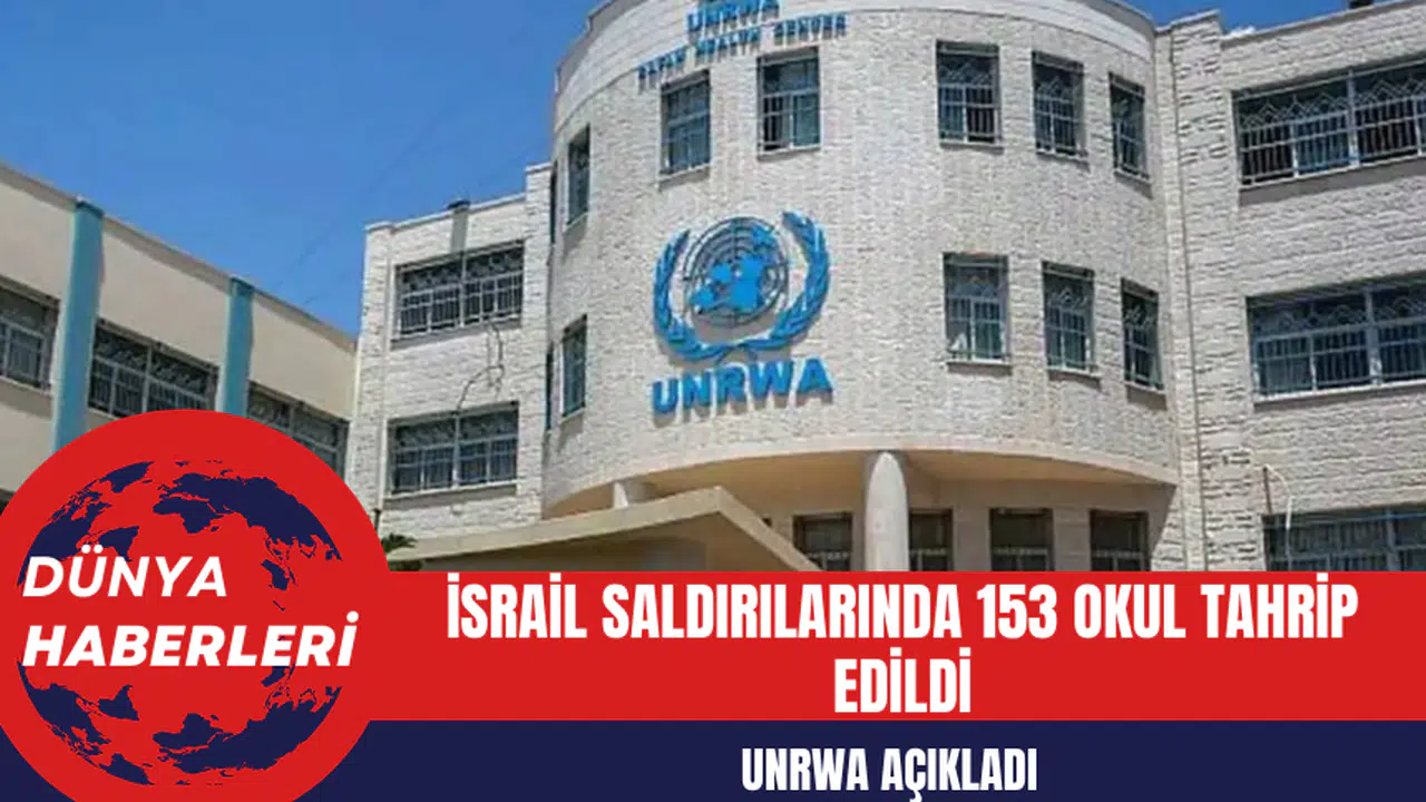 Birleşmiş Milletler Yakın Doğu'daki Filistinli Mültecilere Yardım ve Bayındırlık Ajansı (UNRWA), İsrail’in Gazze Şeridi’ne yönelik saldırılarında 153 UNRWA tesisinin saldırıya uğradığını belirtti.