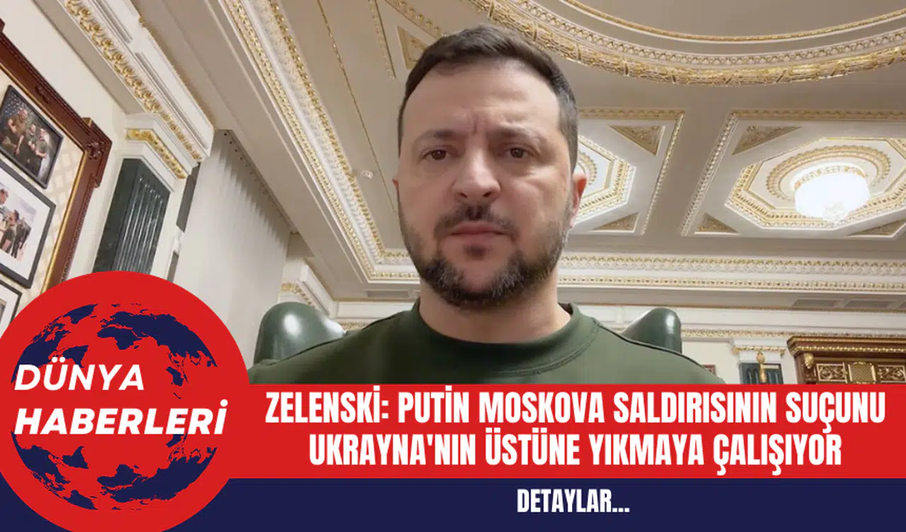 Ukrayna lideri, Putin'in suçlamalarının öngörülebilir olduğunu belirtti. Cuma günü, kamuflaj giymiş silahlı saldırganlar, Moskova'nın Krasnogorsk banliyösünde bulunan Crocus Belediye Binası'na girerek konser salonundaki insanlara ateş açtı ve binayı ateşe verdi. Saldırıda en az 133 kişi hayatını kaybetti.