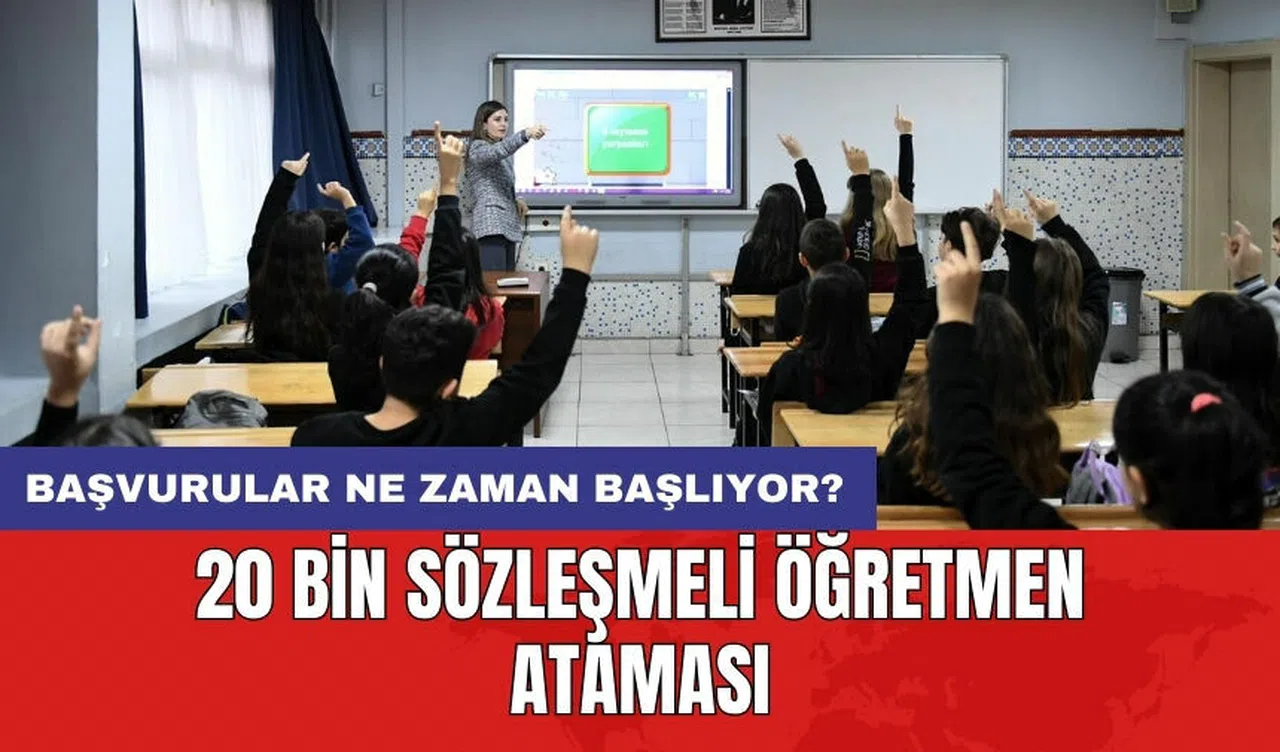 Milli Eğitim Bakanlığı'nca yapılacak 20 bin sözleşmeli öğretmen ataması için başvurular, 20-31 Mayıs 2024 tarihleri arasında elektronik ortamda alınacak.