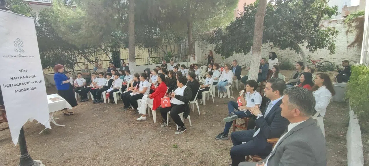 Söke ilçesinin Hacı Halil Paşa Halk Kütüphanesi'nde düzenlenen söyleşide ünlü yazar İlknur Göktürkün Kalıpçı, öğrencilerle buluştu. Etkinlikte, çocuklar bu kez Türkiye Cumhuriyeti'nin kurucusu Mustafa Kemal Atatürk'ü farklı yönleriyle tanıma fırsatı buldular.