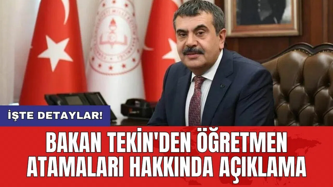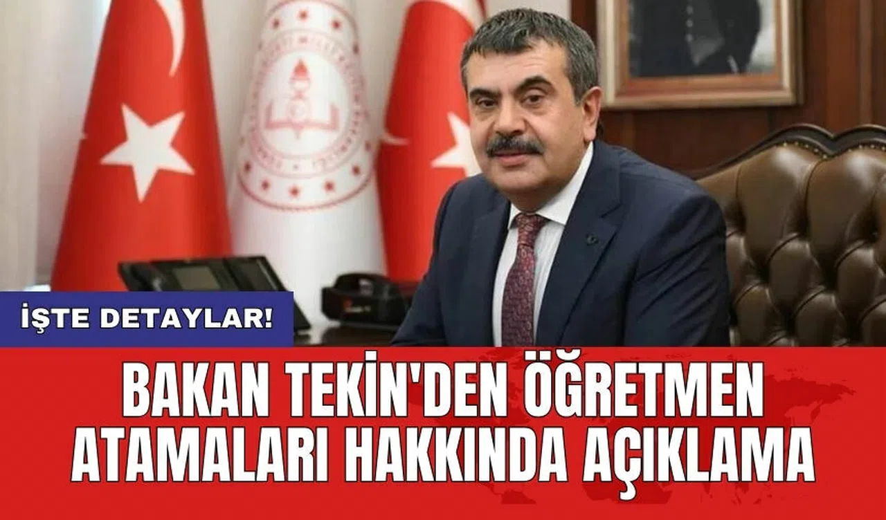 Bakan Tekin, Cumhurbaşkanı Erdoğan'ın "Öğretmen atamaları fazla uzamayacak, yakında bir miktar atama yapacağız" şeklindeki açıklamalarının hatırlatılması üzerine, atamalarla ilgili net bir rakam verilebilmesi için öncelikle mevcut öğretmen sayısı ve ihtiyaçların değerlendirileceğini ifade etti. Bu değerlendirmenin Cumhurbaşkanı Erdoğan ile yapılacağını ve ardından net rakamların açıklanacağını belirtti. Hazine ve Maliye Bakanı'nın da bu toplantıda yer alması gerektiğini vurgulayan Tekin, atama sayısının netleşmesi durumunda Cumhurbaşkanı'nın bunu açıklayacağını ifade etti.