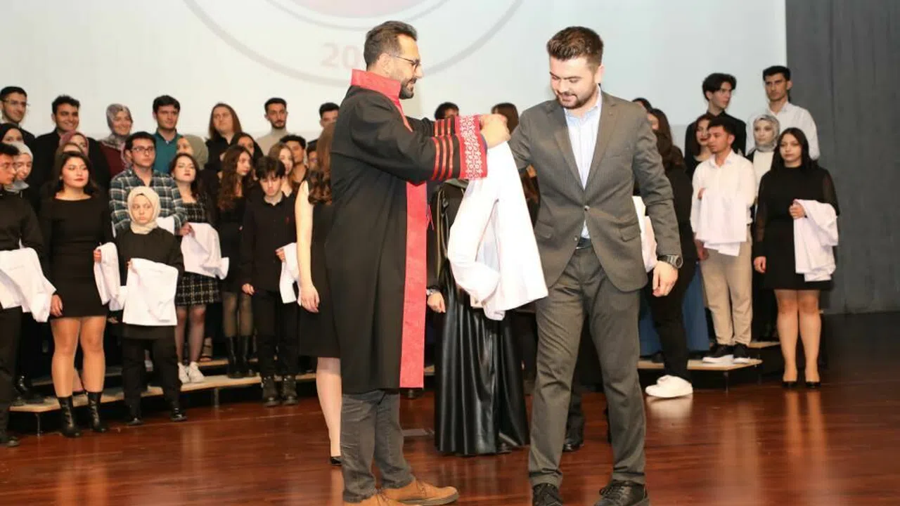 Törene Genel Sekreter Prof. Dr. Uğur Kölemen, Diş Hekimliği Fakültesi öğretim üyeleri, öğrenciler ve veliler katıldı. 60 Diş Hekimliği Fakültesi birinci sınıf öğrencisi, beyaz önlüklerini giyerek hekimliğe ilk adımlarını attı. Beyaz önlük giyme töreni, yeni hekim adaylarının eğitim hayatlarına başladıkları bu önemli günü kutlamaları ve aileleri önünde beyaz önlüklerini giymeleriyle öne çıkmıştır.