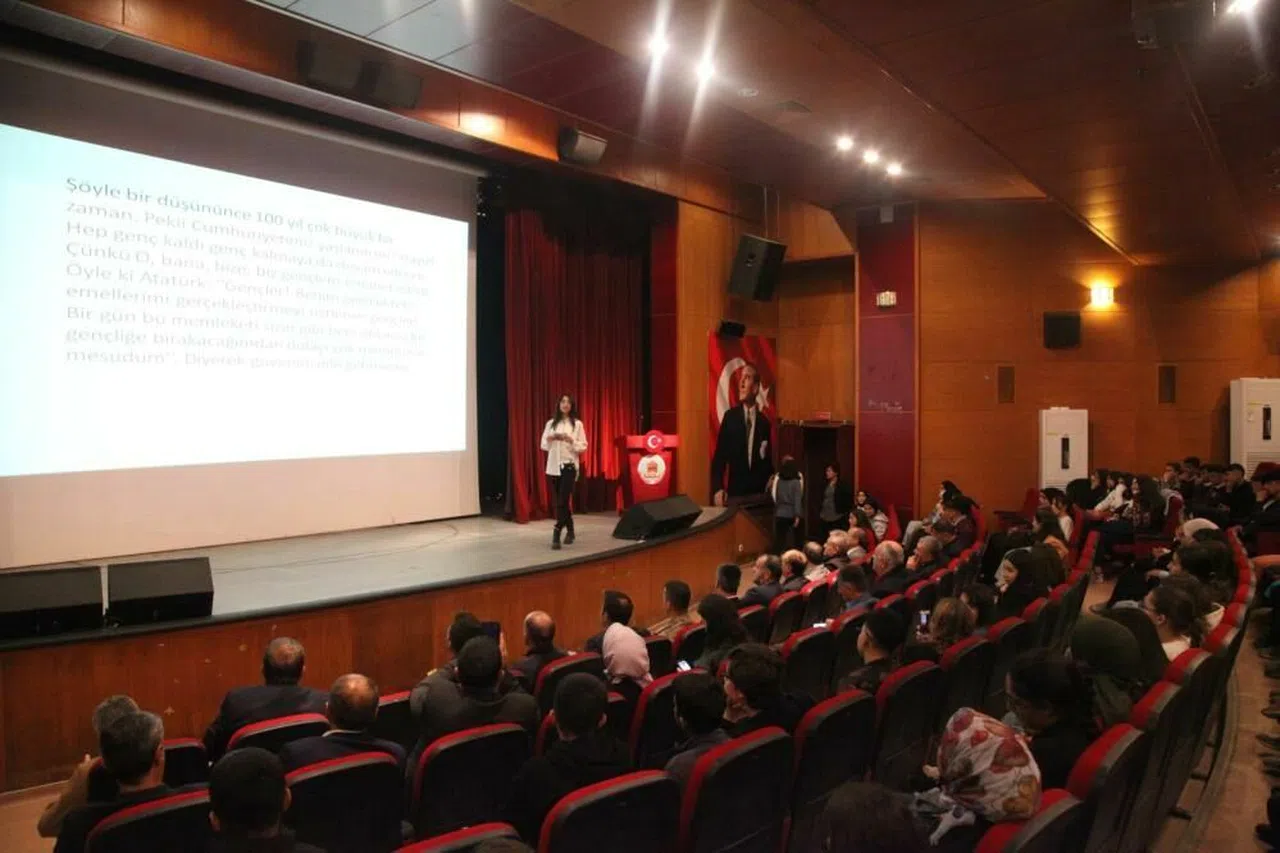 Lise öğrencileri tarafından Cumhuriyet ile ilgili konuları ele alan sunumlar yapıldı. Gençler, "Cumhuriyet ve eğitim, Cumhuriyet ve gençlik, Cumhuriyet ve sanat, Cumhuriyet ve kültür, Cumhuriyet ve bilim, Cumhuriyet ve spor" konularında sunumlar gerçekleştirdi.
