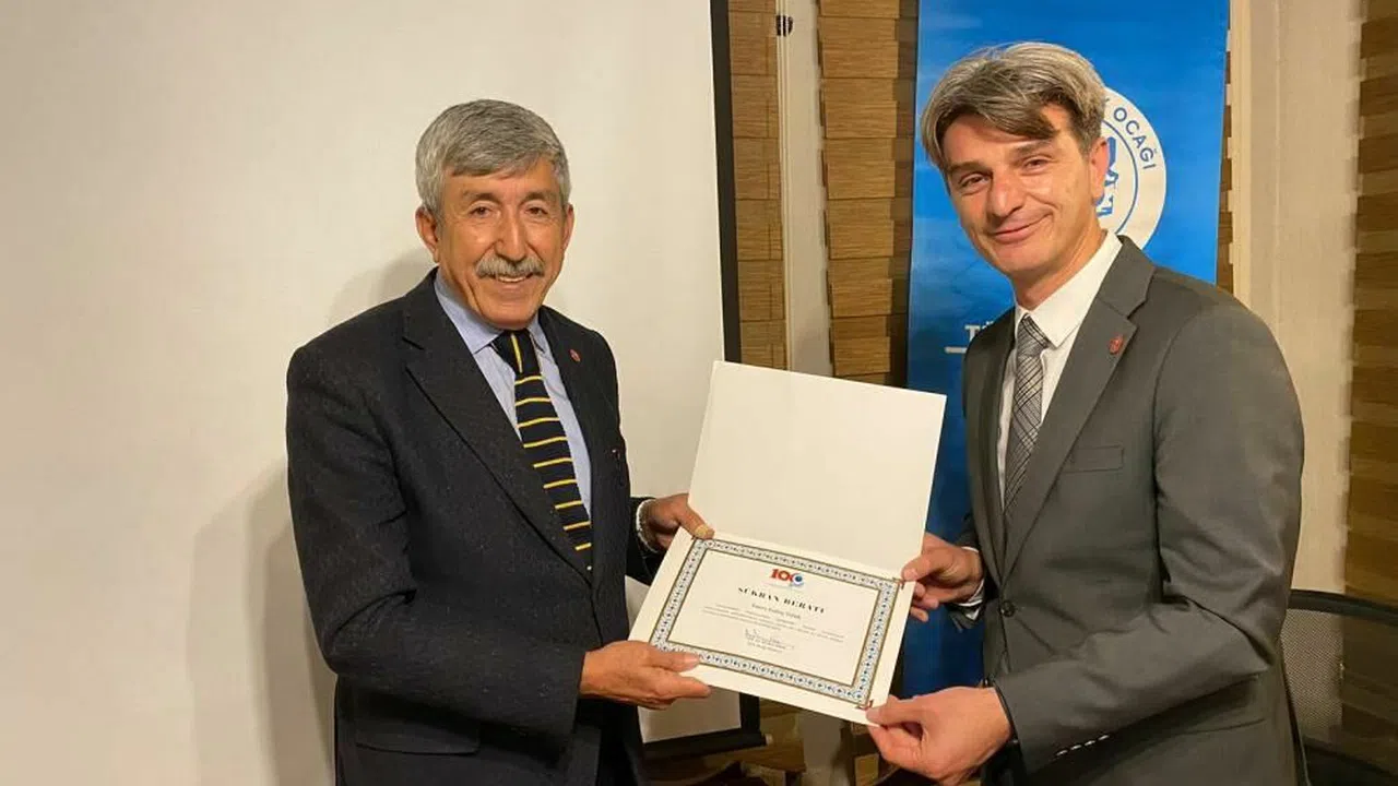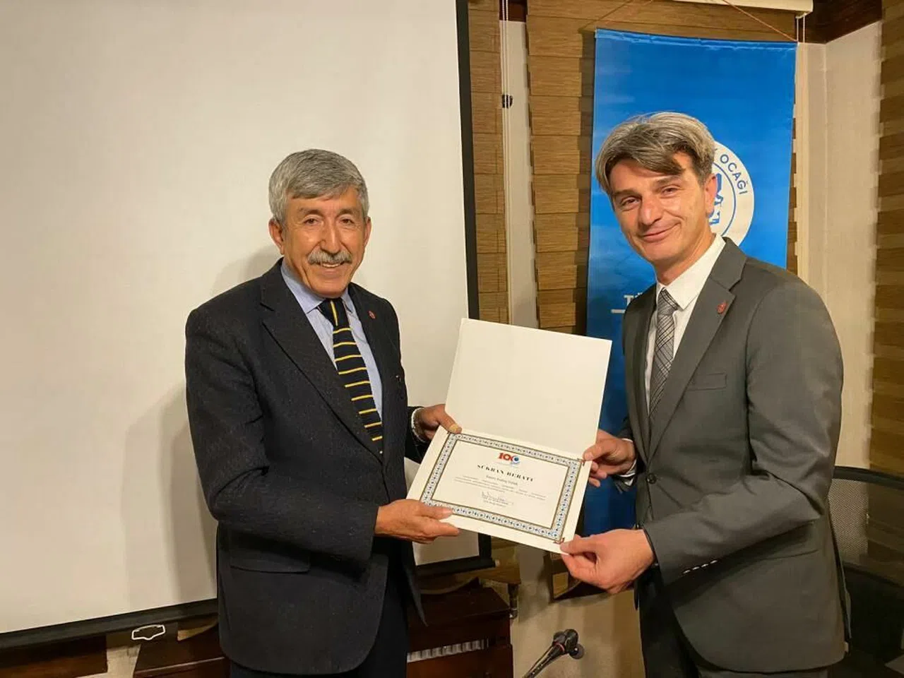 Programın sonunda Eskişehir Türk Ocağı Başkanı Prof. Dr. Nedim Ünal, Erdinç Yuva'ya teşekkür belgesi takdim etti.