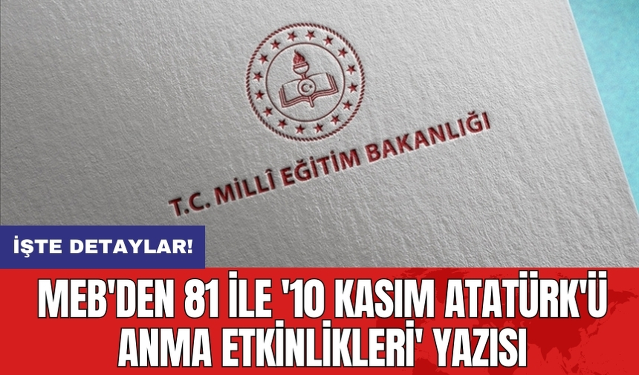 "Bu kapsamda, 10-16 Kasım tarih aralığındaki Atatürk Haftası aynı zamanda 2024-2025 eğitim ve öğretim yılı birinci ara tatiline denk geldiğinden, Bakanlığımıza bağlı resmi ve özel tüm okul ve kurumlarda, kahraman ecdadımızın istiklal ve istikbal mücadelesini cumhuriyetle taçlandıran, evlatlarımıza bölgesinde örnek, dünyada saygın bir ülke armağan eden Gazi Mustafa Kemal Atatürk ve silah arkadaşlarını bir kez daha hayırla hatırlayacağımız bilimsel toplantı, konferans, sergi, yarışma, tiyatro gibi anma etkinliklerinin 4-8 Kasım 2024 tarihleri arasında gerçekleştirilmesi, 10 Kasım 2024 tarihinde ise öğrenci, öğretmen, eğitim kurumu yöneticisi ve velilerin katılımıyla günün anlam ve önemine yakışır anma etkinlikleri düzenlenmesi için valiliklerce (il milli eğitim müdürlükleri) gerekli tedbirlerin alınması hususunda