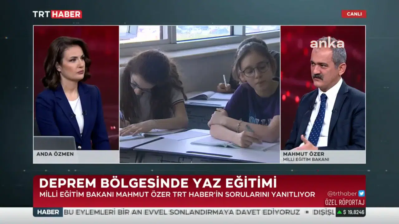 Özer, deprem bölgesindeki öğrenciler için 1 Ağustos-1 Eylül” tarihleri arasında 1 aylık telafi eğitimi yapılacağını belirterek, “2023-2024 eğitim öğretim yılı başladığı zamanda eğitim öğretim devam ederken bir aylık bir telafi programı daha yapacağız. Toplamda 2 aylık bir telafi eğitim programı yapacağız bu bölgedeki öğrencilerimiz için” diye konuştu.