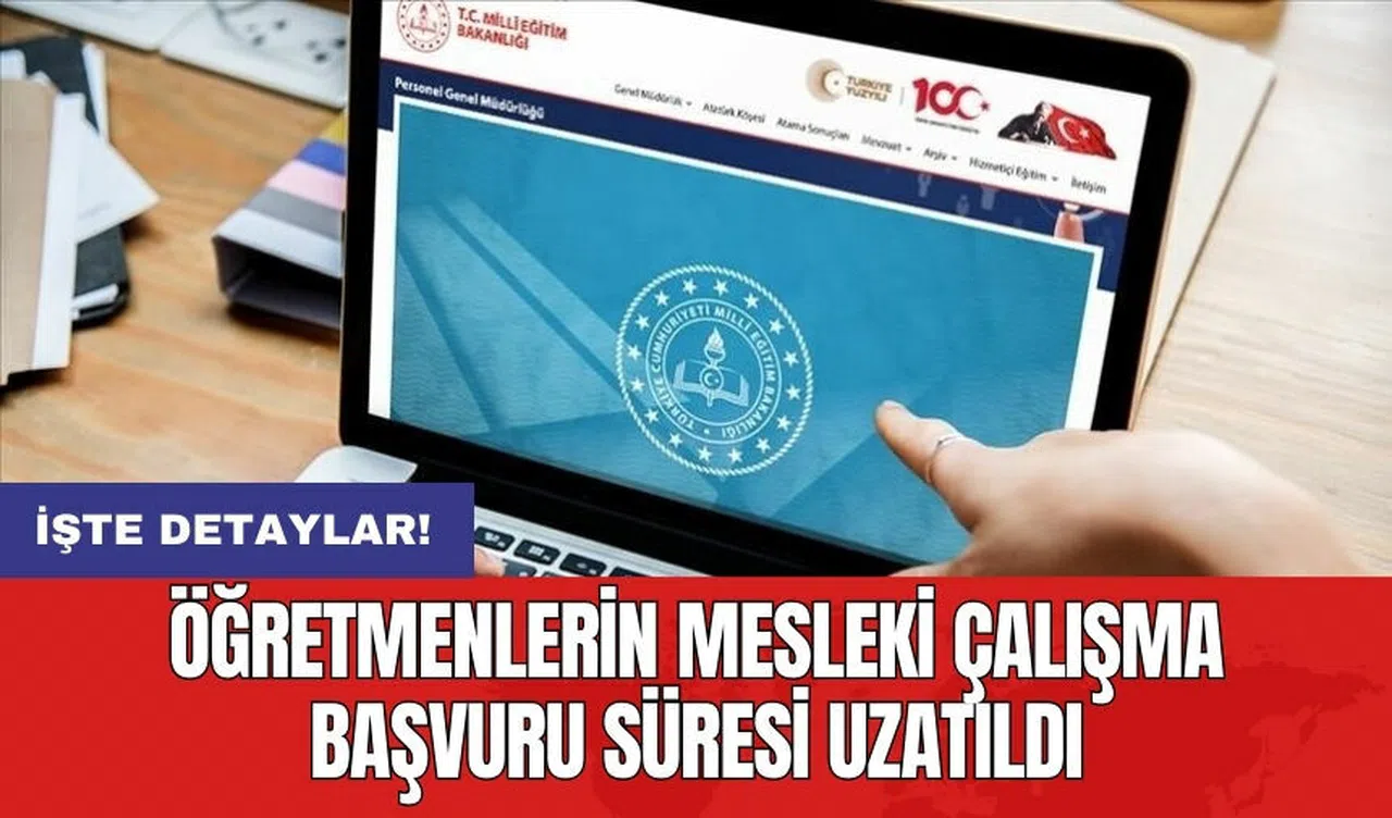 Öğretmenlerin, mesleki çalışmalarını görev aldıkları okul yerine farklı illerde yapabilmeleri için başvuru süresi uzatıldı. Başvurular, bugün saat 23.59'a kadar devam edecek. Öğretmenlerin bu süreci dikkate alarak başvurularını tamamlamaları önem taşıyor.