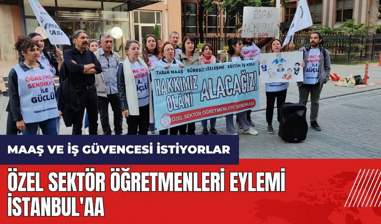 Özel Sektör Öğretmenleri Sendikası üyeleri, taban maaş ve güvenceli yaşam taleplerini dile getirmek için Ankara’da başlattıkları eylemi İstanbul’a taşıdı. Öğretmenlerden Evin Turgut, yaşadıkları mağduriyeti şu sözlerle ifade etti: 'Sözleşmemizle birlikte hemen istifa metnimizi de imzalamak zorunda kalıyoruz. Bu nedenle yaz tatillerinde mevsimlik işçiler gibi başka işler arıyoruz ya da maaşımızla geçinemediğimiz için tüm yaz çalışmak zorunda kalıyoruz.'