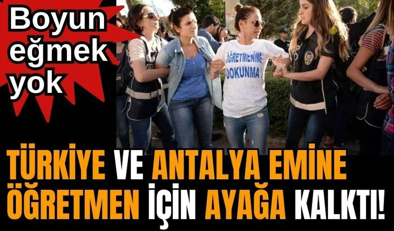 Eğitim-İş Antalya Şube yönetimi ise konuyla ilgili olarak, “Öğretmen arkadaşımız sosyal medyada paylaşıldığı kadarını izlediğimiz konuşmasında cumhuriyet kazanımlarının önemini vurgulamaya çalışmış ve hiçbir siyasi kişiyi, partiyi ya da oluşumun ismini kullanmamıştır. Kimseyi hedef göstermemiş, kimseye hakaret etmemiştir. Ancak yapılan konuşmanın içeriğinden rahatsız olan bazı kişiler kendilerinin ve kendileri gibi düşünenlerin hedef alındığı düşüncesiyle Emine Öğretmen ile ilgili bazı paylaşımlar yaparak kendisinin okuldan atılması gerektiğini, atılmazsa okulun kapatılması gerektiğini yazmışlardır. Gözaltı işlemi yapıldıktan sonra sosyal medyadan yine “Atın bu kadını içeri!” nidaları atan Ankara Büyükşehir Eski Başkanı İ. Melih Gökçek bağımsız olması gereken yargıya açıkça müdahale etmeye çalışmaktadır. Bu durumu sağlayan bu kişilere sormak istiyoruz; Ensar Vakfı’nda onlarca çocuğun tacize ve tecavüze uğradığının ortaya çıktığı dönemde o sapık kişilerin gözaltına alınmasını ya da kurumlarının kapatılmasını da istemiş miydiniz? Atatürk’e ve Türkiye Cumhuriyeti’ne hakaretleri ile bilinen, “Keşke Yunan galip gelseydi” diyen fesli sözde hoca Kadir Mısıroğlu’na da gözaltı talebiniz olmuş muydu? Cemaat yurdunda ihmal sonucu yangında can veren çocuklarımızın ölümünden sorumlu olanlar için hedef gösterici paylaşımlarınız oldu mu? Antalya’da cemaat yurdunda kafası kesilerek öldürülen gencimiz hiç gündeminize geldi mi? Yine cemaat yurdunda baskılara dayanamayarak canına kıyan öğrencimiz, şiddete maruz kalan gençlerimiz umurunuzda mı?” açıklamasını yaptı.