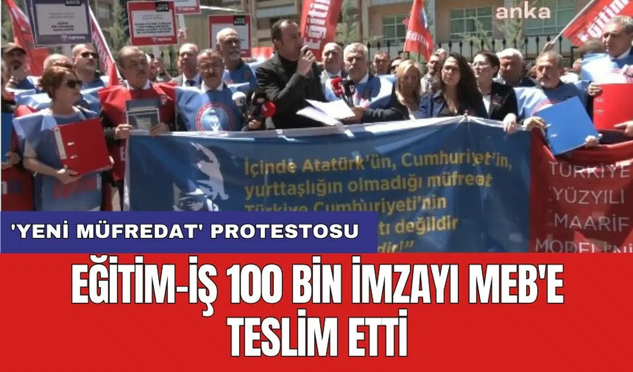 Eğitim ve Bilim İşgörenleri Sendikası (EĞİTİM-İŞ), "Türkiye Yüzyılı Maarif Modeli" başlıklı yeni eğitim öğretim müfredatı taslağının geri çekilmesi için topladıkları 100 bin imzayı ve hazırlanan değerlendirme raporlarını Milli Eğitim Bakanlığına iletti.