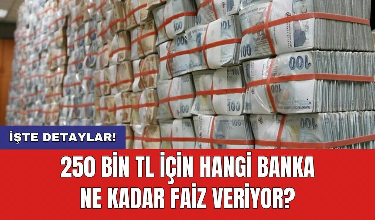 Türkiye Cumhuriyet Merkez Bankası'nın politika faizine bağlı olarak, bankalar tarafından belirlenen mevduat faiz oranları, tasarruf sahipleri tarafından dikkatle takip ediliyor. 250 bin TL gibi yüksek meblağlarda mevduat hesaplarına yatırılan paranın aylık getirisi oldukça önemli. Peki, hangi banka ne kadar faiz veriyor? İşte detaylar: