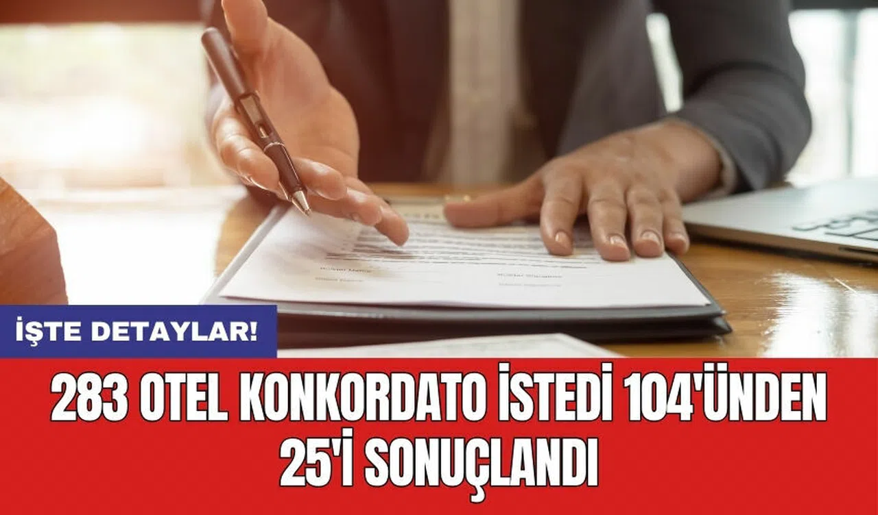 2018 yılından bu yılın ilk 5 aylık dönemine kadar toplamda 283 otel konkordato başvurusunda bulundu. Bu başvurulardan geçici süre verilen 104 otelden yalnızca 25’i konkordato sürecini başarıyla tamamlayabildi. Bu dönemde konkordato başvuruları kabul edilip süre verilen 11 otel ise iflas etti.