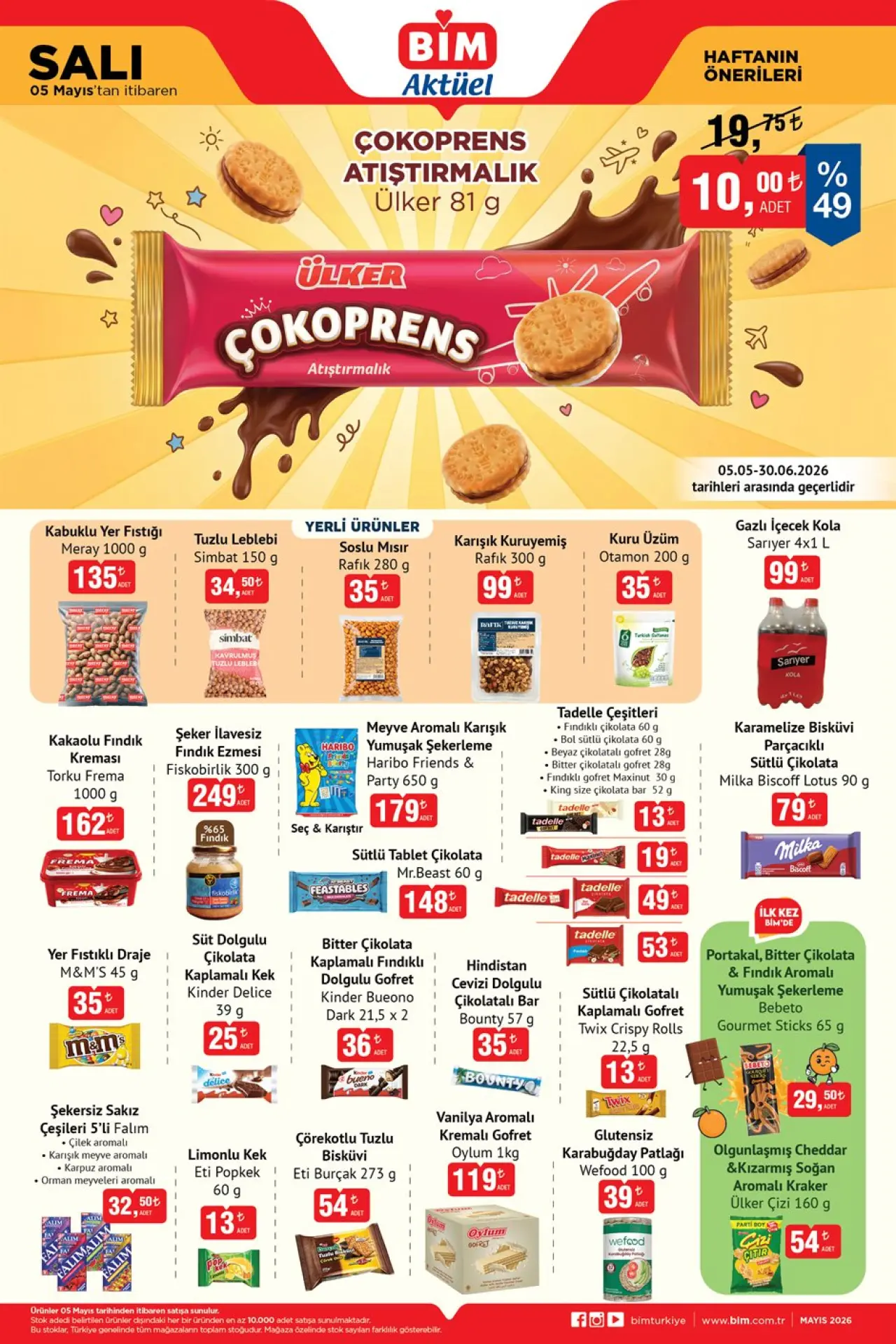BİM, Mayıs ayının ilk haftasında tüketicilerin yüzünü güldürecek geniş kapsamlı bir indirim listesi hazırladı. 6 Mayıs aktüel kataloğundan temel gıda ürünlerinden kişisel bakıma, temizlik malzemelerinden atıştırmalıklara kadar uzanan zengin bir yelpazeyi kapsayan yeni katalog, bütçe dostu fiyatlarıyla dikkat çekiyor.