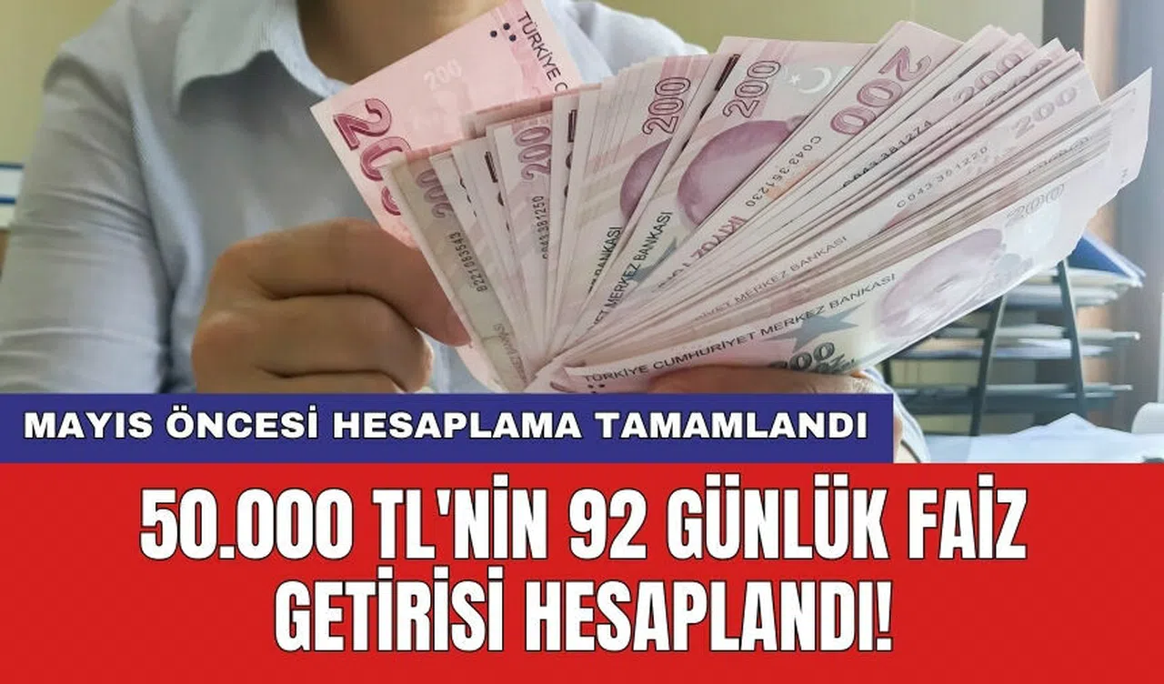 Mayıs ayının gelmesiyle birlikte, 50.000 TL birikimi olan bireylerin merakla beklediği mevduat faizi hesaplamaları açıklandı. Merkez Bankası Para Politikası Kurulu'nun nisan ayı faiz kararını duyurması ve politika faizini yüzde 50 seviyesinde sabit bırakması sonrasında bankaların güncel vadeli mevduat faizi oranları üzerinden hesaplamalar yapıldı. 50.000 TL birikimi olan bir kişinin 92 günlük vade süresi sonunda elde edeceği getirilere dair yapılan hesaplamalar şu şekilde: