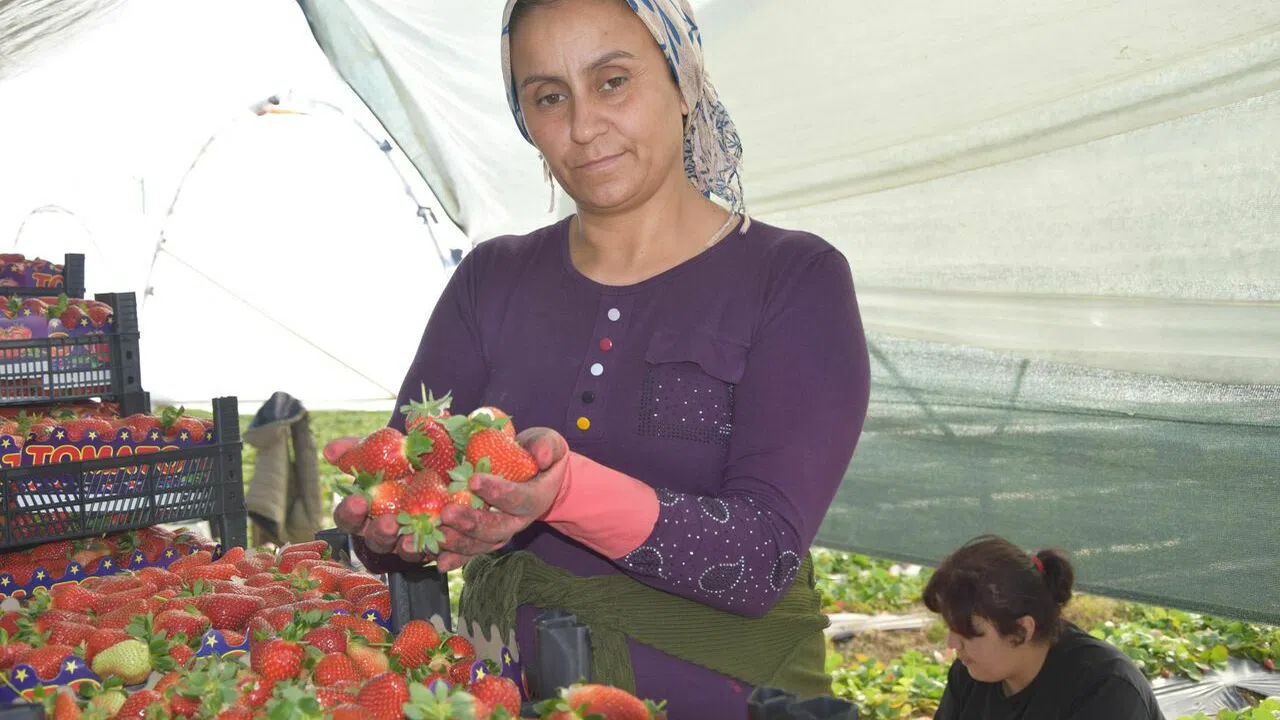 Antalya’nın Aksu ilçesi Kundu Mahallesi’nde topraklı çilek üreticisi Emine Peker, 10 dekarda ürettikleri çileğin Haziran ayı ortalarına kadar devam edeceğini söyledi. Üretici Peker, “Kış sezonunda topraklı çilek üretimi yapıyoruz, yaz sezonunda da çilek fidesi üretiyoruz. Hasadımız 3 aydır devam ediyor. Dikim yaptıktan 45 gün sonra hasat yapmaya başlıyoruz ve 6 ay toplama yapıyoruz” dedi.