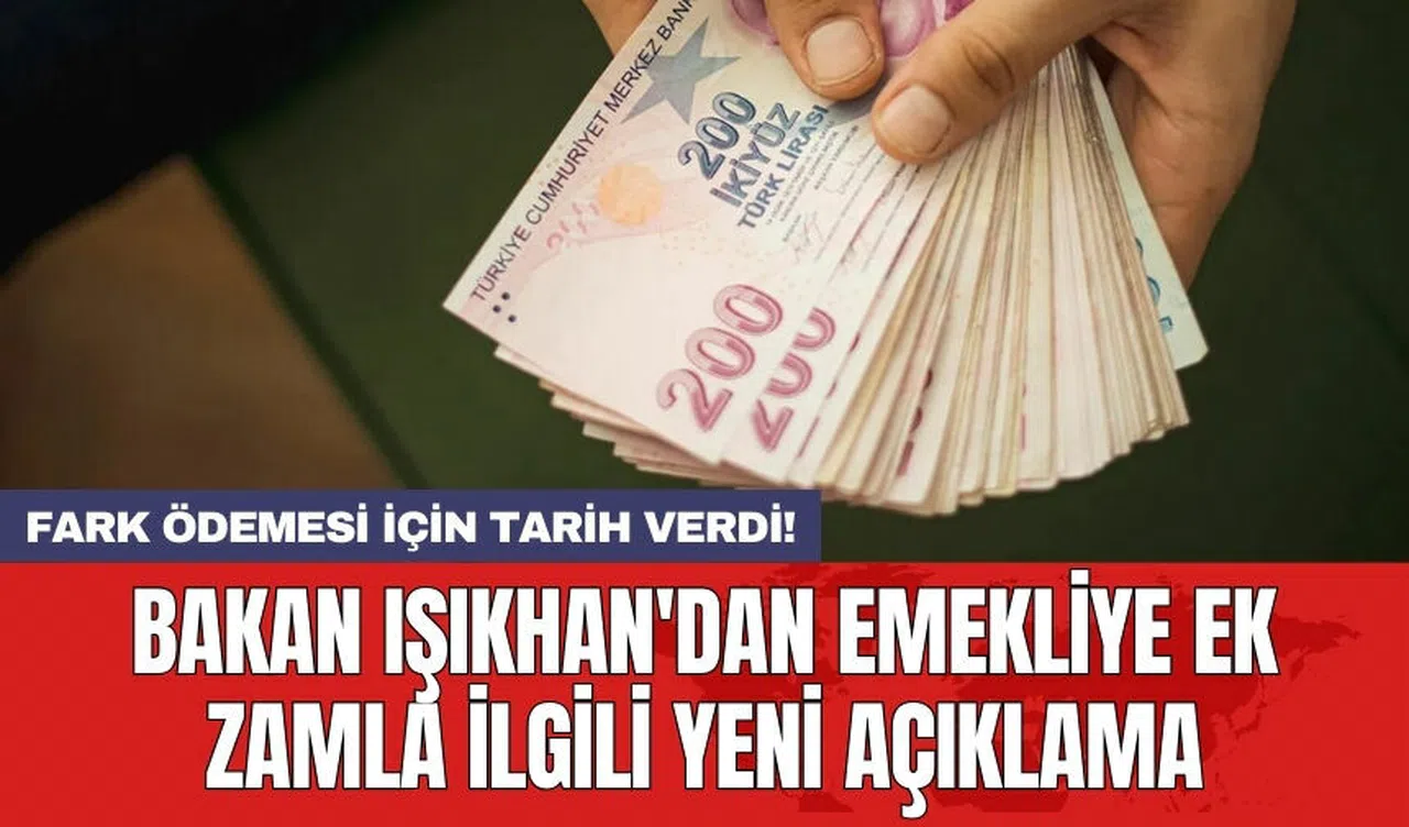 Emeklilere ek zamın hesaplara yatırılma tarihi merak konusu. Çalışma ve Sosyal Güvenlik Bakanı Vedat Işıkhan, zam oranlarının Resmi Gazete'de yayınlanmasının ardından oluşan aylık farkların, yaklaşık bir hafta içinde emeklilerin hesaplarına yatırılacağını açıkladı.