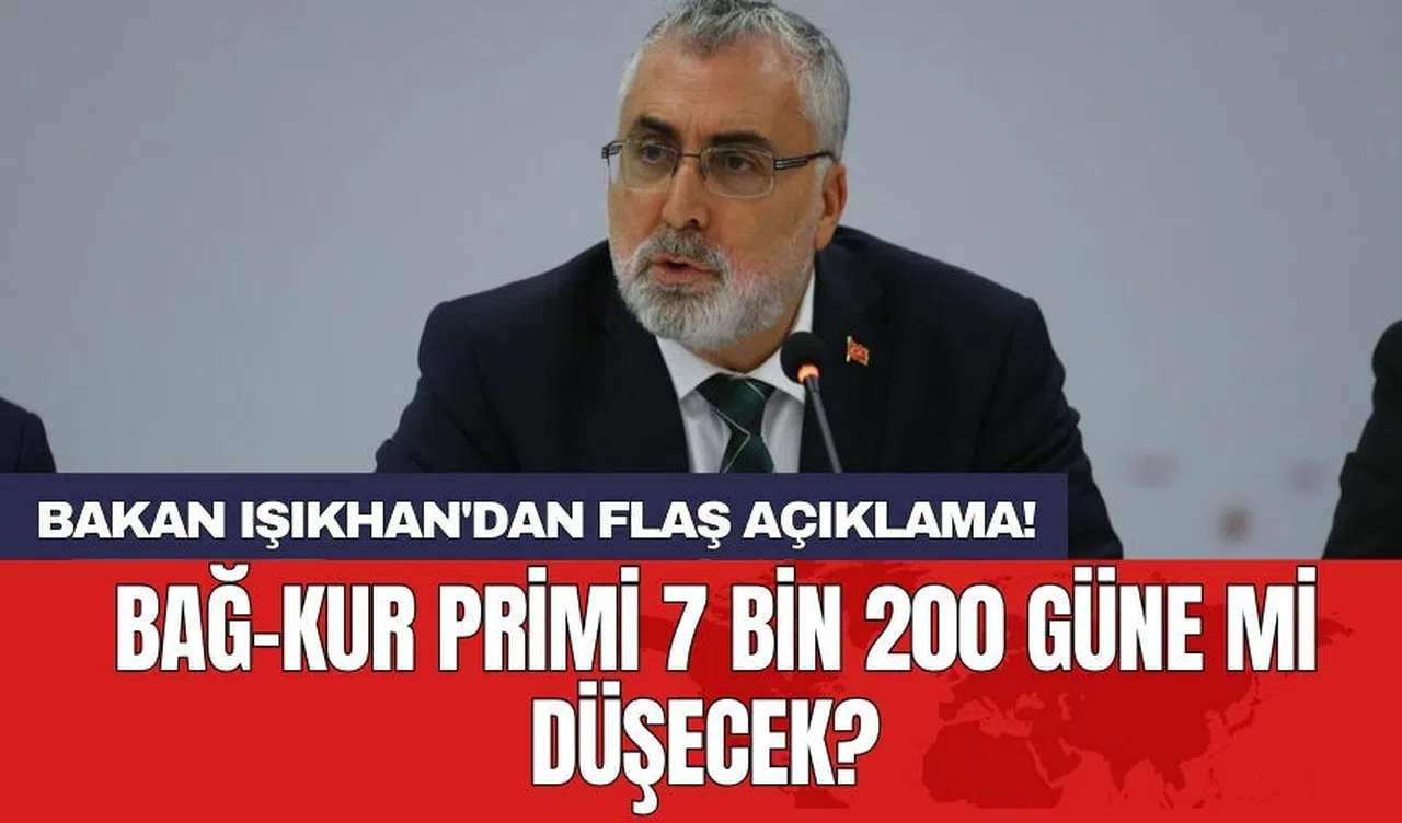 Çalışma ve Sosyal Güvenlik Bakanı Işıkhan, Bağ-Kur'luların emekli olabilmeleri için gereken prim gün sayısının 9 binden 7 bin 200'e düşürülmesi konusundaki beklentilere yönelik açıklamalarda bulundu. Işıkhan, Kanal 7'deki Başkent Kulisi programında yaptığı konuşmada, "Sosyal Güvenlik Sistemimizin sürdürülebilirliğini sağlamak zorundayız. Bu, prim gelirleriyle mümkün oluyor, en önemli gelirimiz bu. Vatandaşlarımızın istihdam ve çalışma hayatında tutulmasına öncelik veriyoruz" dedi.