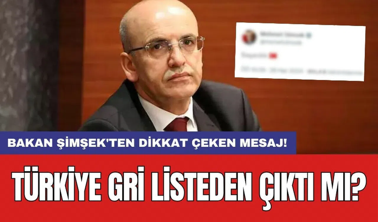 Hazine ve Maliye Bakanı Mehmet Şimşek, Türkiye'nin uluslararası mali suçlarla mücadeledeki uyumunu değerlendiren Mali Eylem Görev Gücü (FATF) tarafından oluşturulan "gri liste"den çıktığını duyurdu. Bakan Şimşek, bu gelişmeyi resmi açıklama öncesinde sosyal medya hesabından paylaşarak "Başardık" ifadesini kullandı.