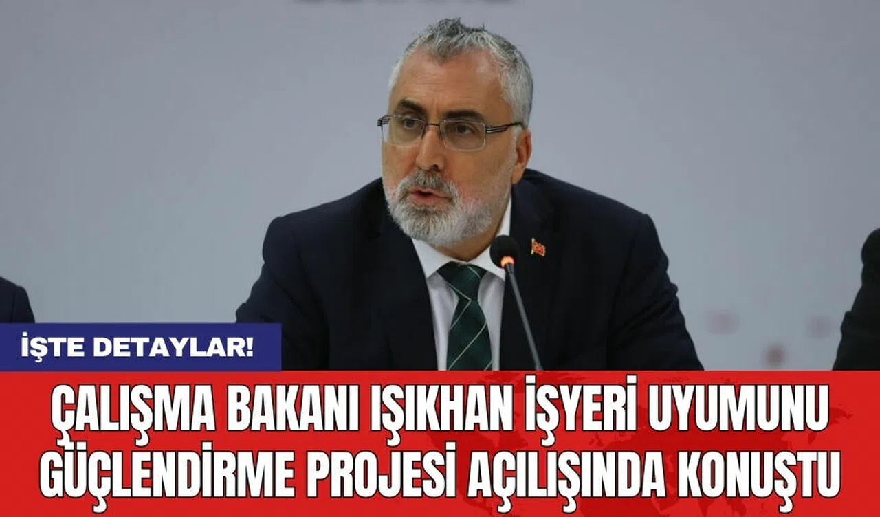 Çalışma ve Sosyal Güvenlik Bakanı Vedat Işıkhan, "İş Teftiş Rehberlik ve Sosyal Diyalog Yoluyla İşyeri Uyumunun Güçlendirilmesi Projesi"nin açılış törenine katıldı. Işıkhan, bir otelde düzenlenen programda teftişin ve takibin, kamu hizmetlerinin en son aşaması ve sürecin en önemli bileşeni olduğunu belirtti. Işıkhan, "Kurumsal çalışmalarımızın uygulama aşamasındaki yansımalarını tespit edemezsek o iş, tamamlanmış sayılmaz. Bu noktada Rehberlik ve Teftiş Başkanlığımız kritik bir rol üstlenmektedir" dedi.
