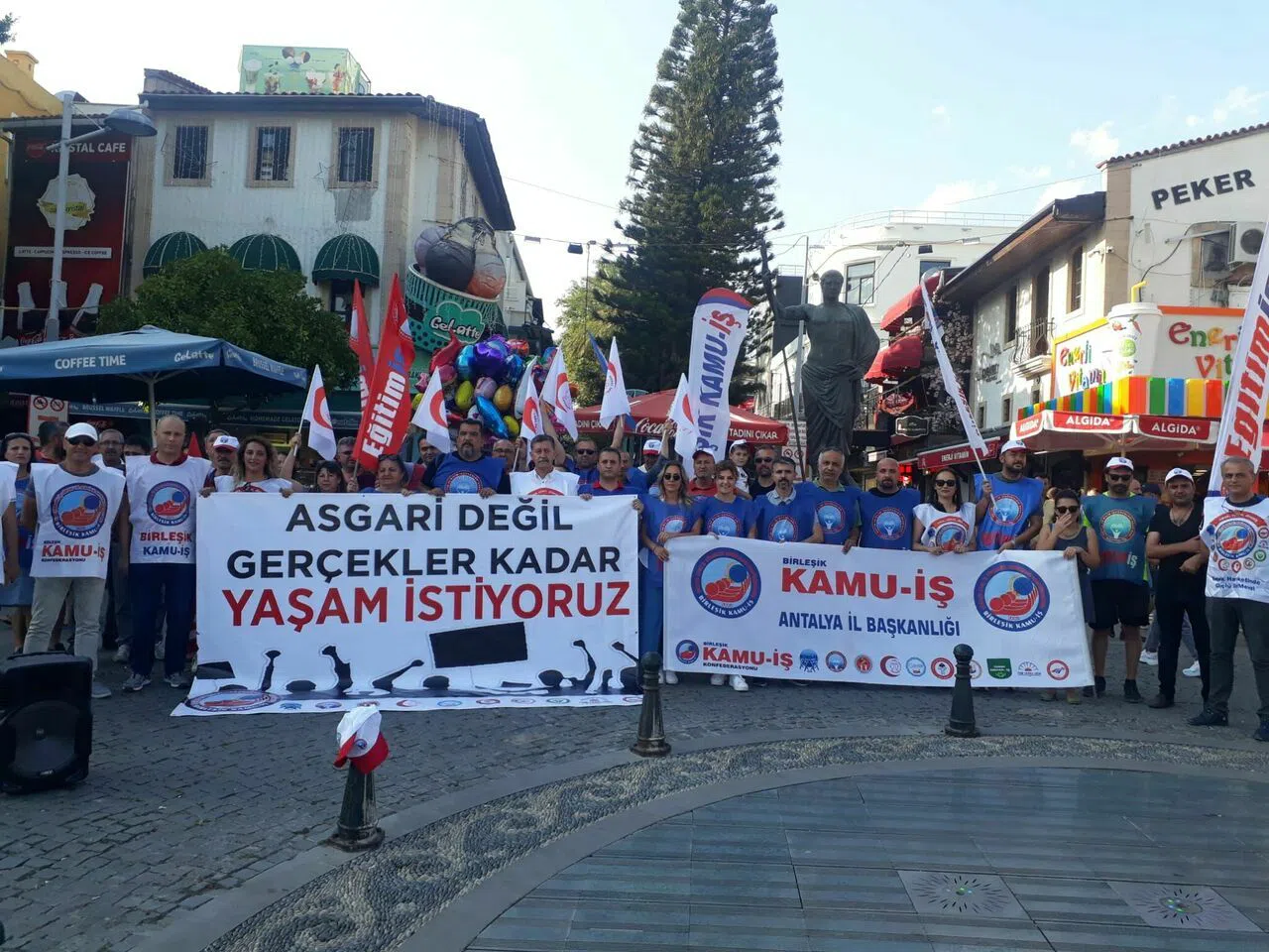 Birleşik Kamu-İş Konfederasyonu Antalya Şube Başkanı Sadık Acar, “Kamu emekçisinin maaş zamlarının belirlenmesine sadece haftalar kalmış, milyonlarca emekçi belirlenecek olan zam oranı için dikkat kesilmiştir. Son toplu görüşmelerde sarı sendikaların razı olduğu ‘buçukluk’ zamlar ve yanlış ekonomi politikalarında inat edilmesi sonucu içine düştüğümüz ağır enflasyon ortamı nedeniyle alım gücü günden güne eriyen, gelecek hayali kurmak bir yana dursun ay sonunu getiremeyen kamu emekçileri, maaşlarında insanca yaşamalarını mümkün kılacak bir oranda artış beklemektedir” dedi.
