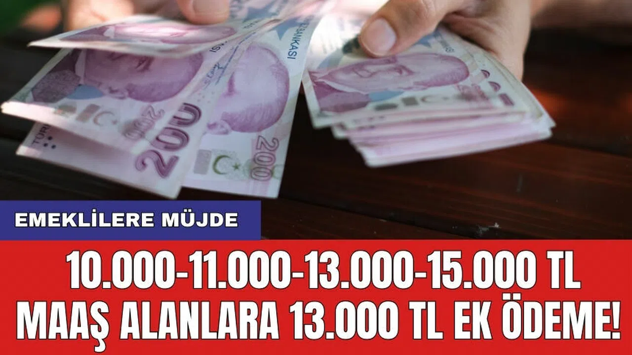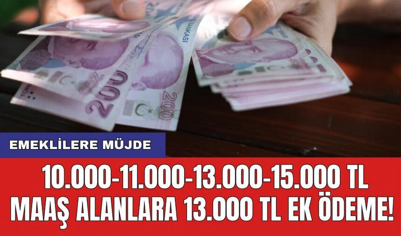 Yakın zamanlarda emekliler için sevindirici haberler peş peşe gelirken, yeni bir gelişme daha yaşandı. 10.000 ile 15.000 TL arasında emekli maaşı alan çok sayıda kişiye, 13.000 TL tutarında ek ödeme yapılacağı açıklandı!