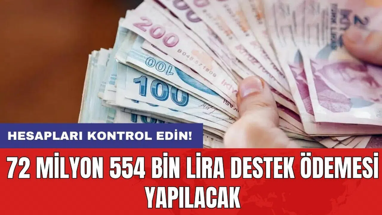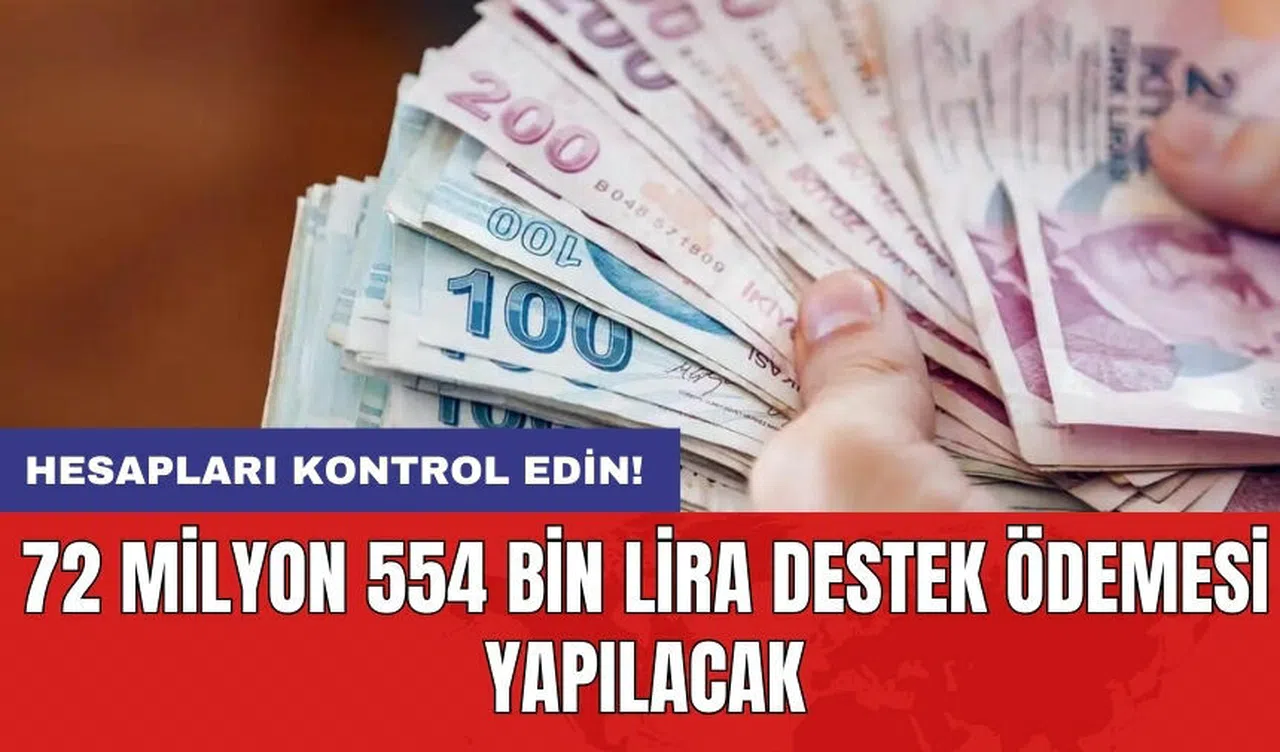 Toplamda 72 Milyon 554 Bin Lira Ödeme Gerçekleştirilecek