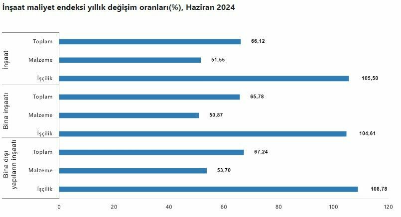 TÜİK'in verilerine göre, 2024 yılı Haziran ayında İnşaat Maliyet Endeksi, bir önceki yılın aynı ayına göre yüzde 66,12 oranında artış gösterdi. Aylık bazda ise endeks yüzde 0,40 oranında yükseldi. Bu artış, hem malzeme hem de işçilik maliyetlerinde önemli değişimlerin yaşandığını gösteriyor.