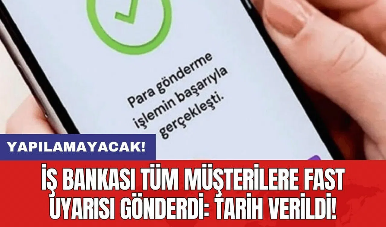 İş Bankası yetkilileri, "FAST Sistemi'nde gerçekleştirilecek bakım çalışması nedeniyle 9 Haziran 2024 Pazar günü saat 05.00 ile 08.00 arasında FAST işlemlerinin yapılamayacağını" açıkladı.