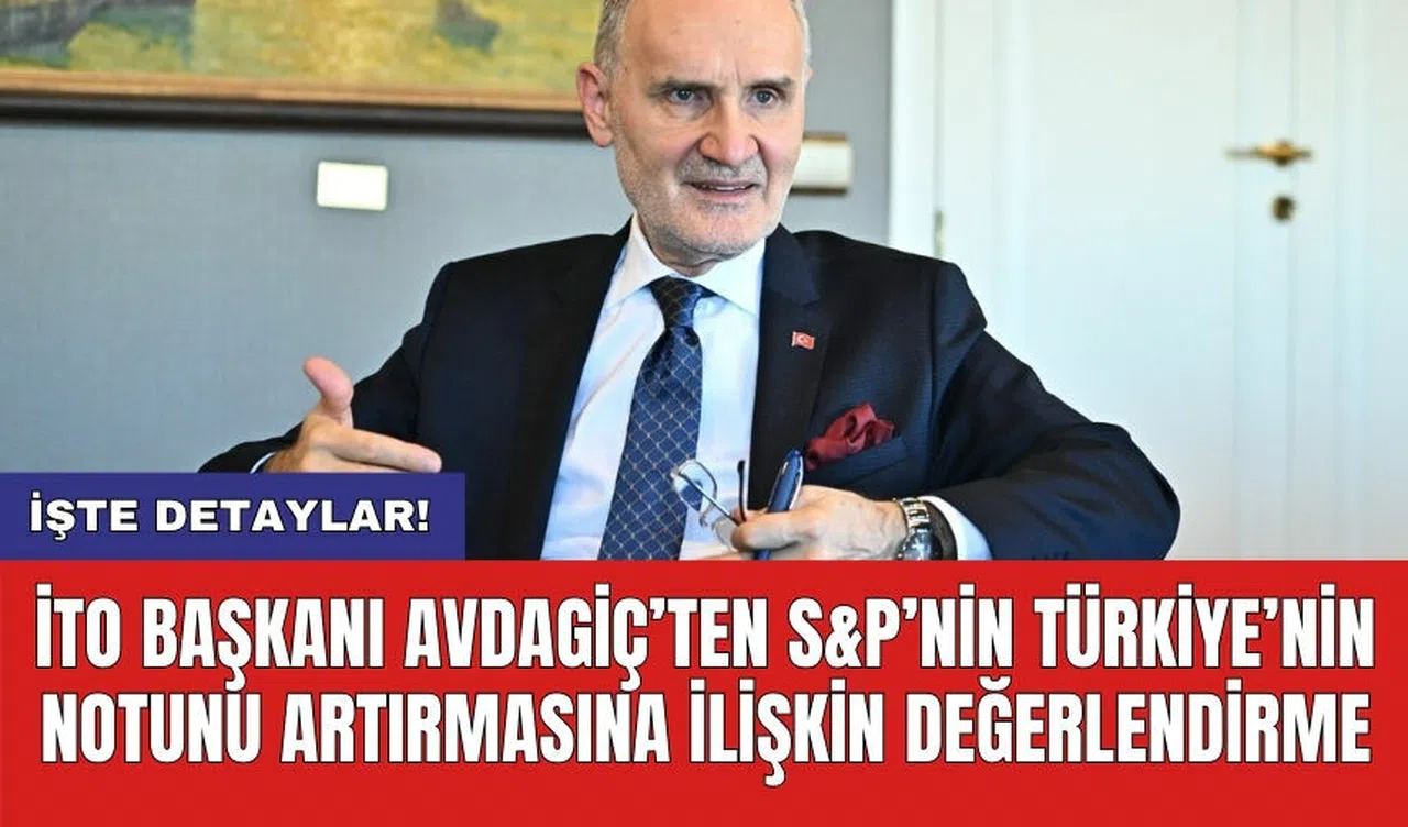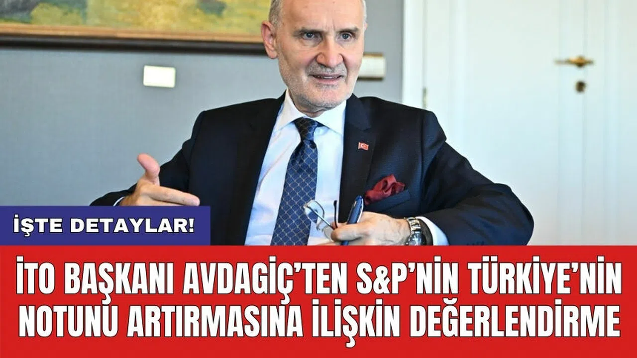 İstanbul Ticaret Odası (İTO) Başkanı Şekib Avdagiç, uluslararası kredi derecelendirme kuruluşu Standard & Poor's (S&P)'un Türkiye'nin kredi notunu 'B'den 'B+'ya yükseltmesini ve kredi notu görünümünü 'pozitif' olarak korumasını değerlendirdi. Avdagiç, sosyal medya platformu X üzerinden yaptığı açıklamada, bu gelişmenin Türkiye ekonomisi için önemli bir güven işareti olduğunu vurguladı.