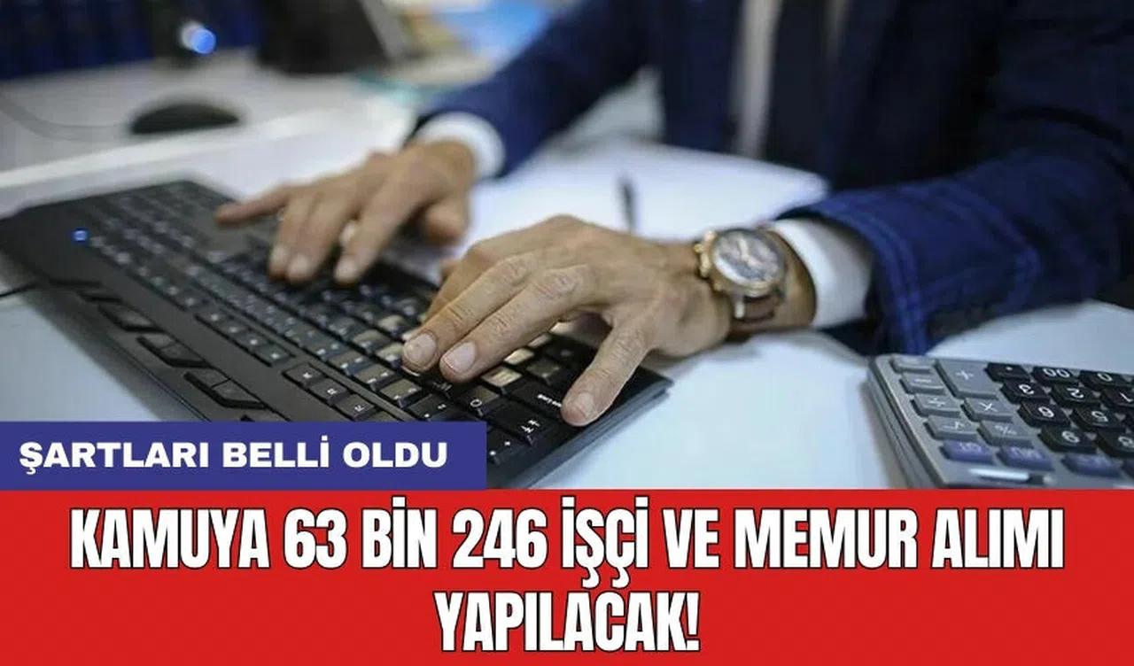 Toplamda 18 kamu kurumu tarafından gerçekleştirilecek olan 63.246 personel alımı için başvuru şartları ve tarihleri Resmi Gazete'de duyuruldu. Sağlık Bakanlığı, Milli Savunma Bakanlığı, İzmir Büyükşehir Belediyesi, SGK, Karabağlar Belediyesi, Kafkas Üniversitesi, Atabağı Belediyesi, Akdeniz Üniversitesi, İstanbul Üniversitesi, Gazi Üniversitesi, Adalet Bakanlığı, Ankara Sosyal Bilimler Üniversitesi, Bingöl Üniversitesi, YÖK, Jandarma Genel Komutanlığı, Çanakkale Onsekiz Mart Üniversitesi, Sakarya Uygulamalı Bilimler Üniversitesi, Harran Üniversitesi, EGM ve EÜAŞ gibi kurumlar, çeşitli pozisyonlar için personel alacak.