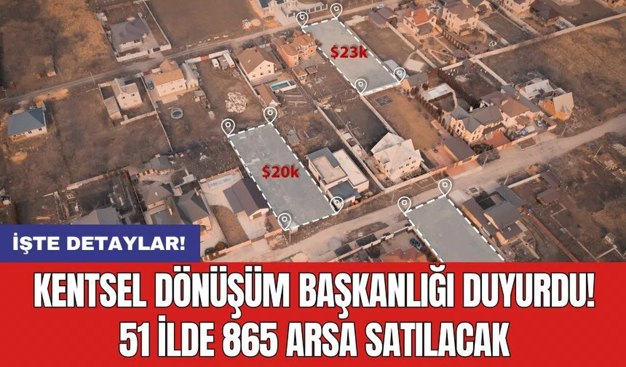 Kentsel Dönüşüm Başkanlığı, Türkiye genelindeki 51 ilde bulunan toplam 865 arsayı satışa çıkarıyor. Satışlar, yüzde 25 peşinatla ve 24 ay vadeli ödeme seçeneğiyle gerçekleştirilecek. Peşin ödemelerde ise yüzde 20 indirim uygulanacak.