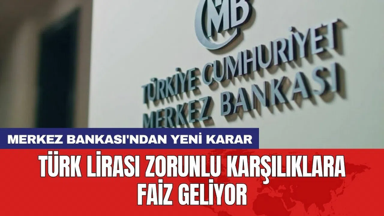 Türkiye Cumhuriyeti Merkez Bankası 1 aydan uzun vadeli Türk lirası mevduat ve kur korumalı mevduat hesapları için tesis edilen zorunlu karşılıklarına üç ayda bir faiz uygulanacağını açıkladı.