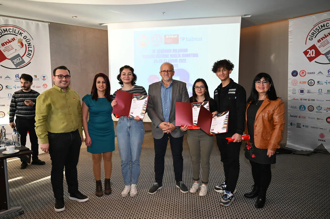 Antalya Sanayici ve İş İnsanları Derneği (ANSİAD)’nin Antalya Valiliği ve İl Milli Eğitim Müdürlüğü izniyle ve Habitat Derneği iş birliğiyle ilimizdeki 18 meslek lisesine yönelik 25-26-27 Kasım tarihlerinde Bi’ Düşünsen Bulursun Mesleki Eğitimde Yenilik Maratonu gerçekleştirdi. Meslek lisesi öğrencilerinin 21. yüzyıl becerilerine uygun, kapasitelerinin geliştirilmesi amacıyla eğitim aldıkları bölüm ile ilgili yenilikçi bir uygulama geliştirdikleri üç günlük eğitimde öğrenciler, Habitat Derneği Genel Sekreter Yardımcısı İsmail Metin, Girişimcilik Programı Direktörü Tuğba Saptır, Etkinlik Yöneticisi Hasan Basri Cihan, ve Dijital Dönüşüm Program Direktörü Elif Yıldırım’ın koordinasyonunda üç gün boyunca eğitime katkı sunan mentorlerin desteğiyle çalışmalarını gerçekleştirdiler. Vasıflı elemanların yetiştirilmesine yönelik eğitim metodlarının uygulandığı, teknolojik uygulamalar, sektörlerde iş öğrenimini kolaylaştıracak teknik araçlara yönelik eğitim müfredatlarının uygulandığı eğitimde, iklim krizi, sürdürülebilirlik, çevre ve sosyal sorumluluk alanında projeler ortaya çıktı. Maratonda 18 takım yarışırken, jüride ANSİAD Başkanı Akın Akıncı, ANSİAD Girişimcilik Komitesi Başkanı Işık Yargın, ANSİAD Geçmiş Dönem Başkanı Bekir Bülend Özsoy, TMMOB Harita ve Kadastro Mühendisleri Antalya Şube Başkanı Okan Hançer, Tarım Sanayicileri ve İş İnsanları (TARSİD) Derneği Başkanı Argun Şahin, ANSİAD Başkan Yardımcısı Ercan Özbek, Yönetim Kurulu Üyesi İlhan Karakaya, Girişimci & AMAX Group İş Geliştirme Müdürü Ulaş Alsan yer aldı.