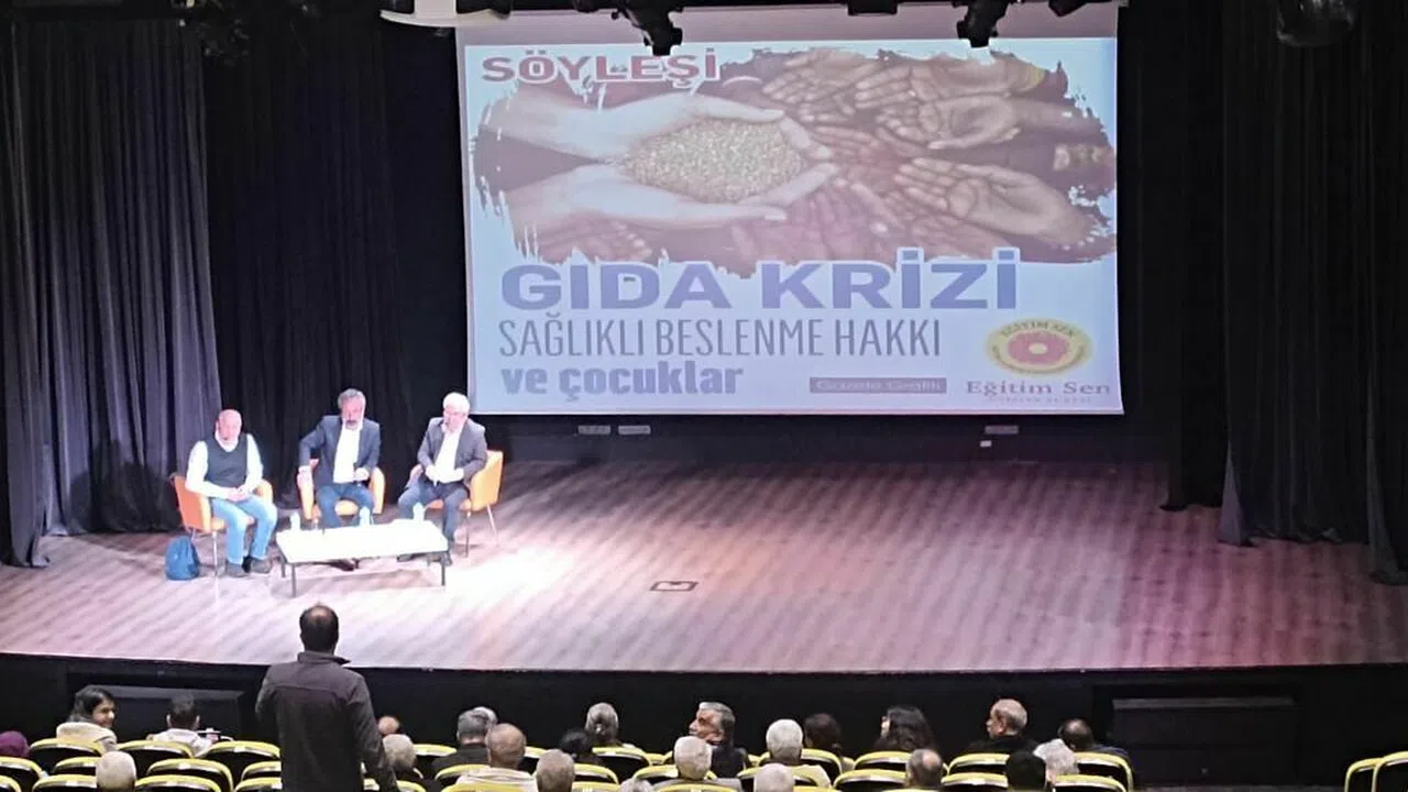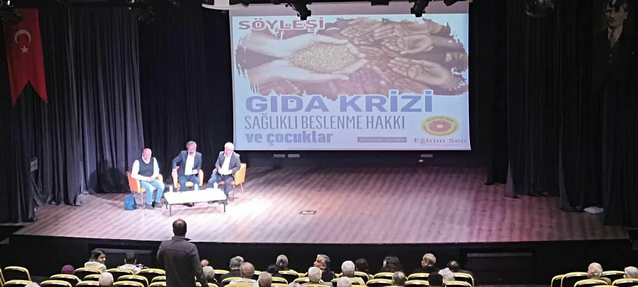 Ali TAŞ’ın konukları tanıtmasıyla başlayan söyleşide ilk sözü alan Dr. Bülent ŞIK, gıdaya erişim hakkı, gıda güvencesi ve gıda güvenliğinin öneminden bahsederek başladığı sunumunda özellikle çocukların sağlıklı beslenmesinin bedensel ve zihinsel gelişimleri üzerindeki etkisi üzerinde durdu. Çocukların küçük yetişkinler olmadığının altını çizen Bülent ŞIK, anne karnında başlayan ve 2 yaşına kadar devam eden sürecin beslenme açısından kritik önemde olduğunu vurguladı, 2-6 yaş arasının ve 6-16 yaş arasının da büyük önem taşıdığını belirtti. Çocukların sağlıklı bir çevrede büyümesinin politik ve kamusal bir perspektifle ele alınması gerektiğini çünkü çocukların gıdalara bulaşan toksik kimyasallardan metabolik özellikleri nedeniyle daha çok etkilendiklerini söyledi. Özellikle çocukların maruz kaldığı kurşun oranlarının geri döndürülemez zihinsel sorunlara yol açtığını; Türkiye’de kamu kurumlarının, ilgili bakanlıkların bu soruna ilişkin bir politikalarının olmadığını belirtti. Çocuklarda koruyucu sağlık çalışmalarının, yeterli ve güvenli beslenmenin ileriki yaşlarda topluma çok yönlü katkıda bulunacağını, sağlık harcamalarının düşeceğini belirtti. Bütün bu önlemlerin kamusal önlemler olması gerektiğini ve devletin bu önlemleri almasını talep etmenin yurttaşlık hakkı olduğunu vurguladı. Çocukların beslenmesiyle ilgili cumhuriyet tarihindeki en kötü dönemden geçtiğimizi, bırakın sağlıklı beslenmeyi çocukların açlıkla karşı karşıya kaldığını sözlerine ekleyen Bülent ŞIK, tüm çocuklara günde bir öğün sağlıklı gıdanın devlet tarafından sağlanması gerektiğini söyledi.