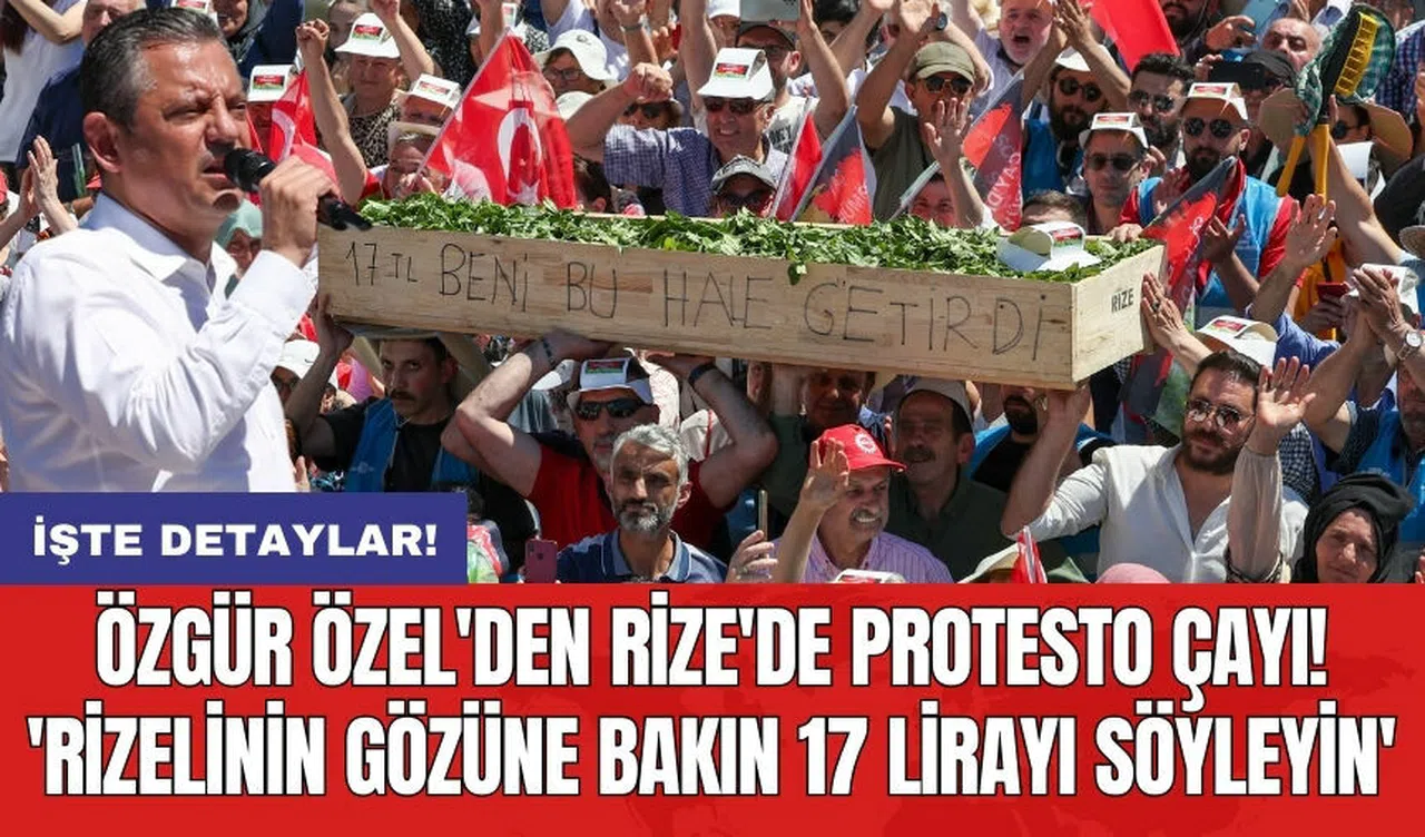 CHP, çay taban fiyatının 17 lira olarak açıklanmasının ardından çay üreticisinin sorunlarına dikkati çekmek için Rize’de çay mitingi düzenledi. Mitinge, CHP Genel Başkanı Özgür Özel’in yanı sıra Genel Başkan Yardımcıları Ensar Aytekin, Sevgi Kılıç, Erhan Adem, TBMM İdare Amiri Uğur Bayraktutan ve bazı CHP'li milletvekilleri de katıldı. Özel’in konuşmasından öne çıkanlar şöyle: