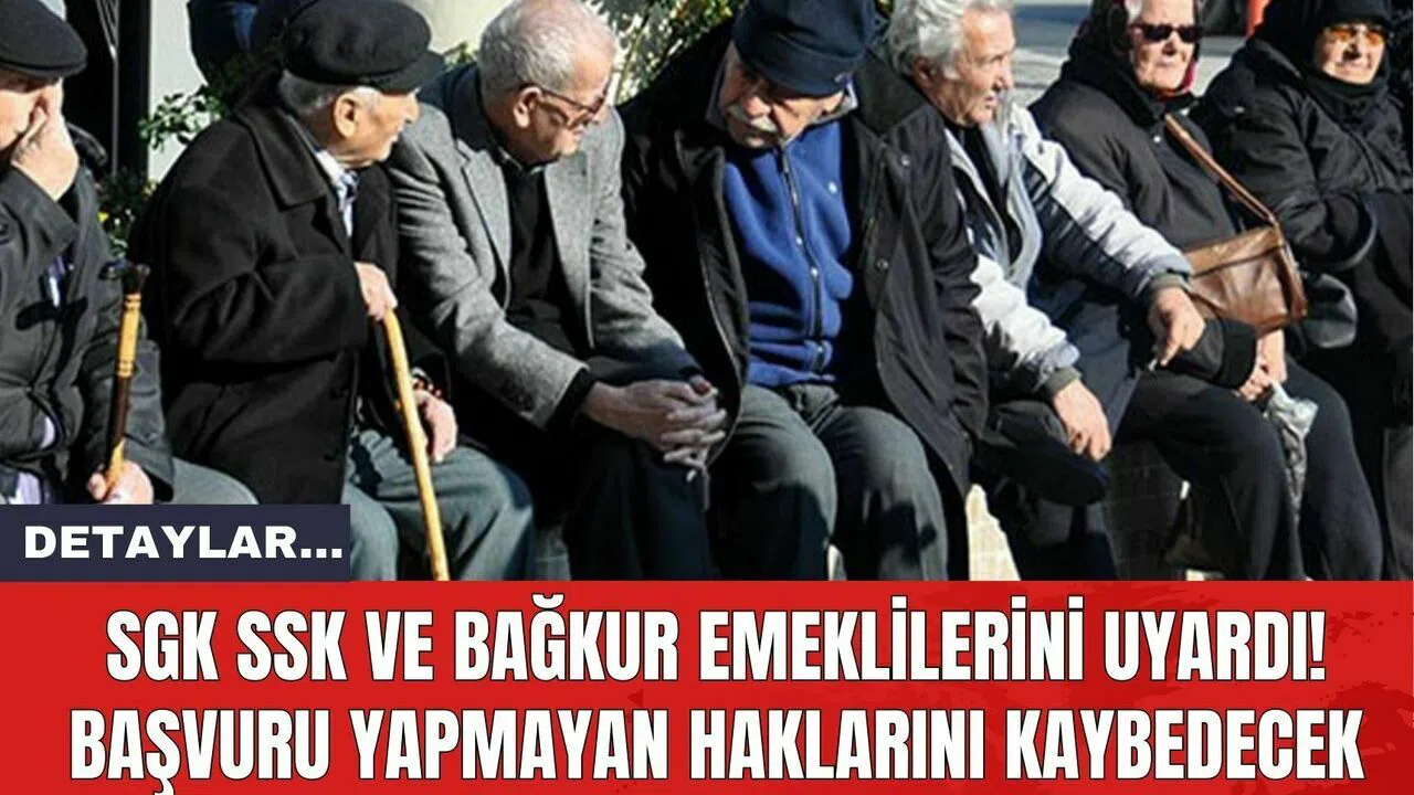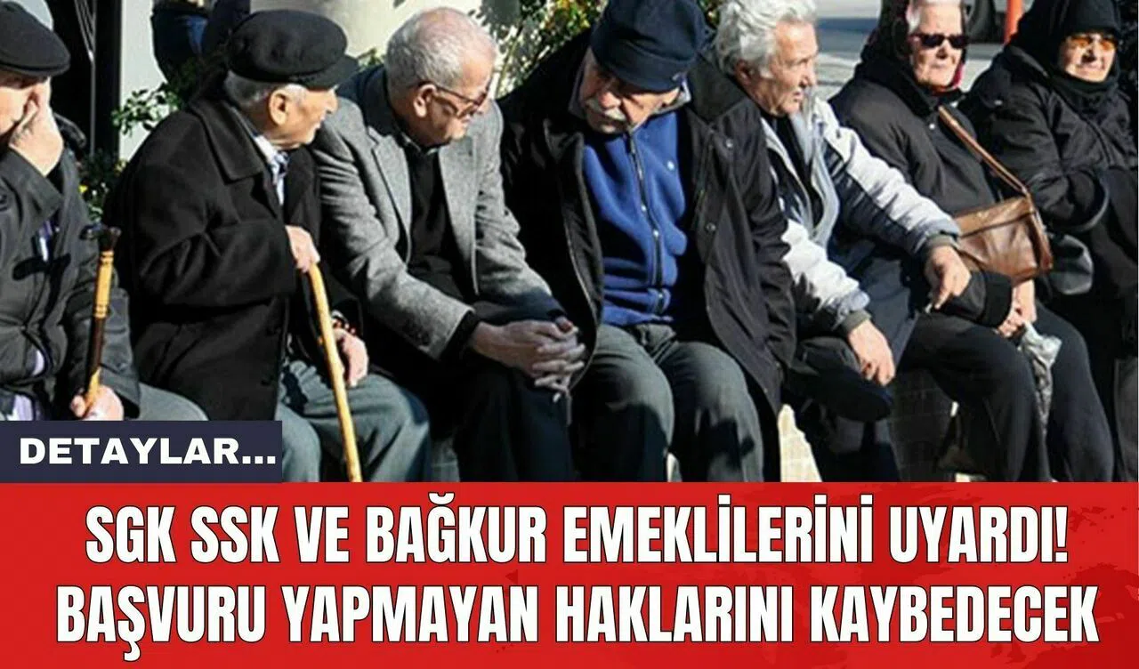 Sosyal Güvenlik Kurumu (SGK), SSK ve Bağkur emeklilerini kritik bir konuda uyardı. Emeklilik haklarının kaybolmaması için belirli süreler içinde başvuru yapılması gerekiyor. Aksi takdirde, bazı haklar süresiz olarak geri alınamayacak şekilde kaybedilecek.