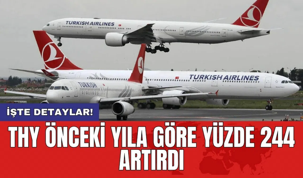 Türk Hava Yolları (THY), 2023 yılına ilişkin mali tablolarını kamuoyuna duyurdu. Yayımlanan verilere göre, şirket önceki yıla kıyasla net karını rekor seviyede artırarak %244'lük bir büyüme elde etti.