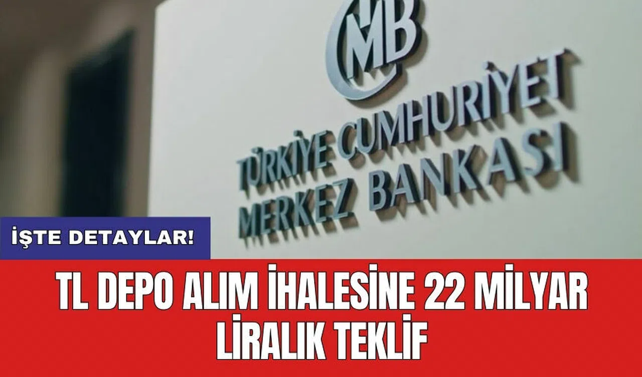 Türkiye Cumhuriyet Merkez Bankası (TCMB), bugün gerçekleştirdiği 100 milyar liralık Türk Lirası depo alım ihalesinde, toplamda 22 milyar 717 milyon lira değerinde gerçekleşme sağladı.