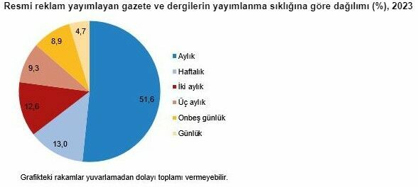 Resmi reklam yayımlayan gazete ve dergilerin yayımlanma sıklığına göre dağılımı şu şekilde gerçekleşti: