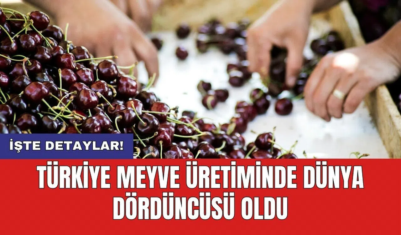 Türkiye, GeeksforGeeks'in Mart 2024 raporuna göre dünyada meyve üretiminde dördüncü sırada yer aldı. Yıllık 25 milyon tonluk üretimle Türkiye, dünya genelinde önemli bir konuma sahip.