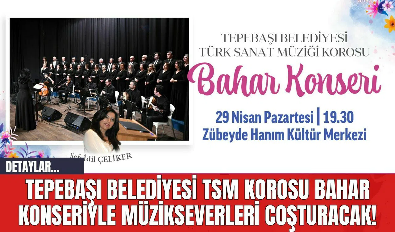Tepebaşı Belediyesi Türk Sanat Müziği (TSM) Korosu, Şef İdil Çeliker önderliğinde çalışmalarını sürdürüyor ve sanatseverler için muhteşem bir müzik ziyafeti sunmaya hazırlanıyor. Koronun düzenlediği etkinliklerden biri de "Bahar Konseri" olacak.