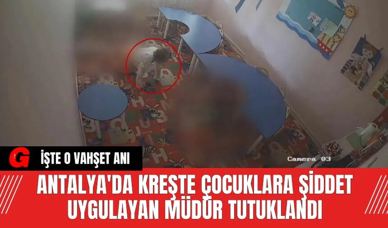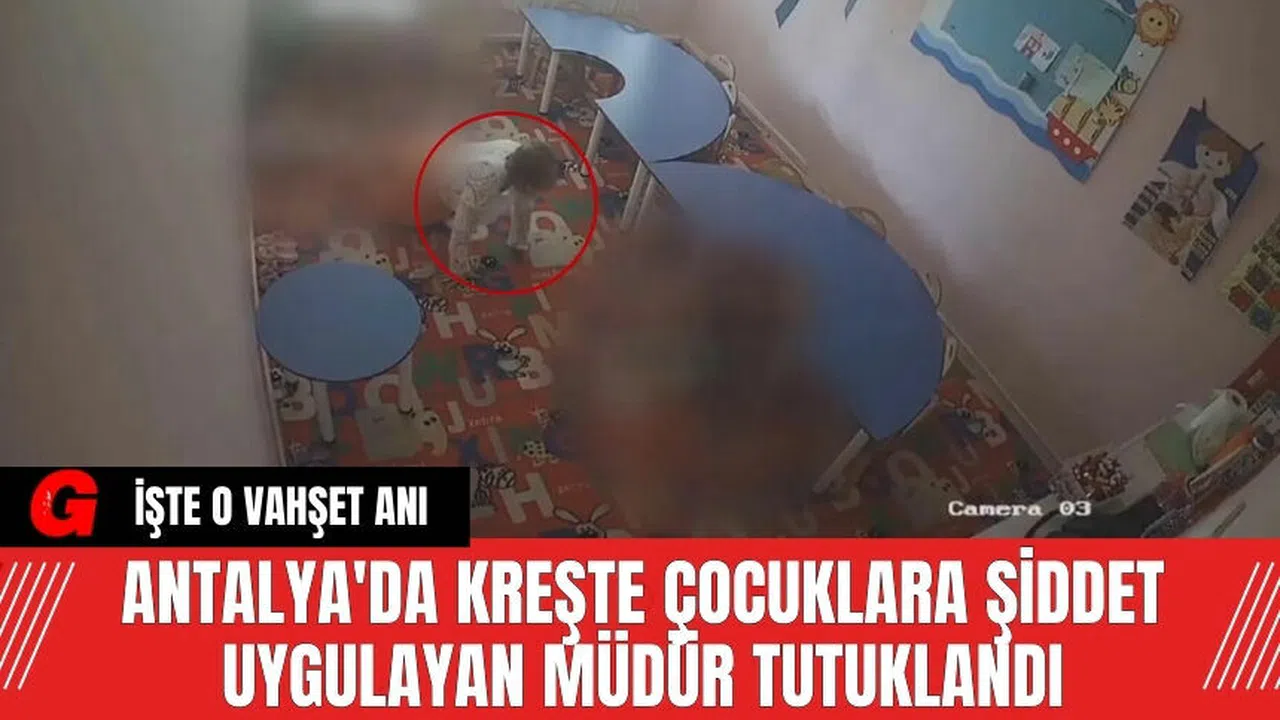 Antalya'nın Finike ilçesine bağlı Kum Mahallesi'nde 14 Mayıs'ta jandarmaya başvuran baba S.C.A, aynı mahallede bulunan özel gündüz bakımevine giden kızı İ.A'nın, kreş müdürü Ö.Ü. (46) tarafından darp edildiği iddiasıyla şikayetçi oldu. Güvenlik kamerasına yansıyan görüntülerde çocuklara şiidet uygulayan kreş müdürü tutuklandı.