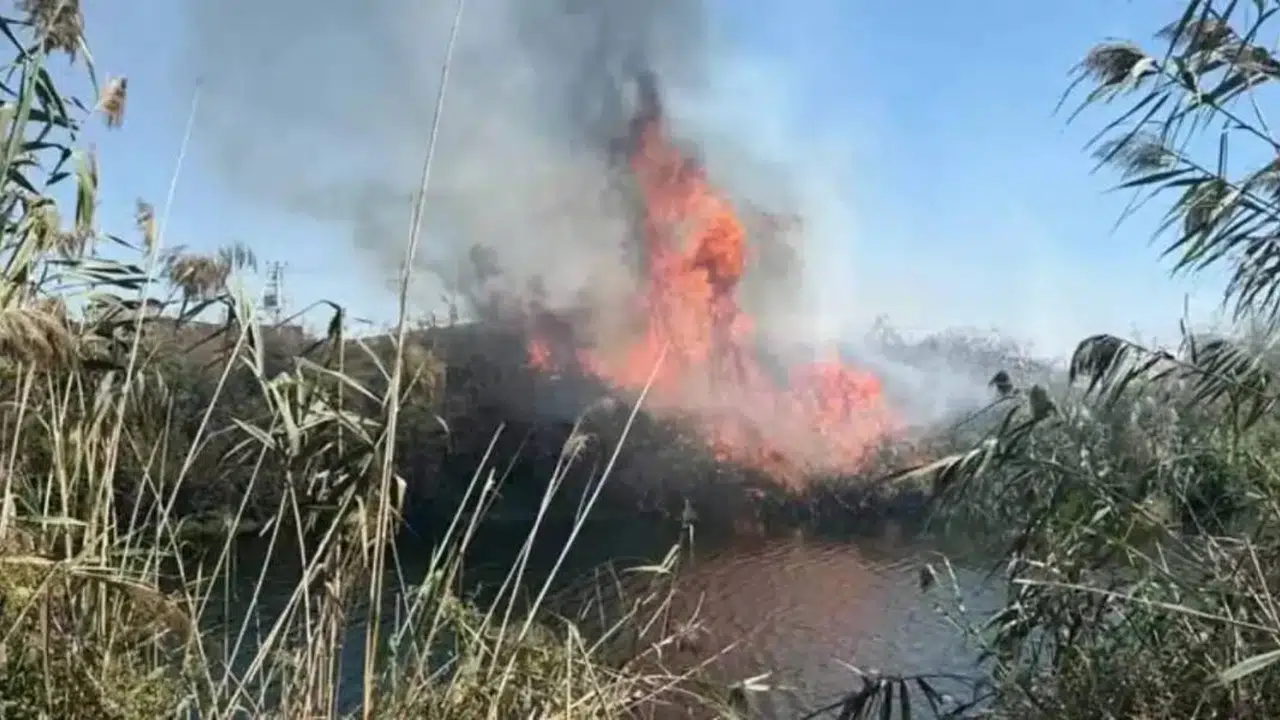 Antalya'nın Muratpaşa ilçesi Güzeloluk Mahallesi’nde, Düden Çayı kanal boyundaki sazlık alanda saat 12.00 sıralarında yangın çıktı.