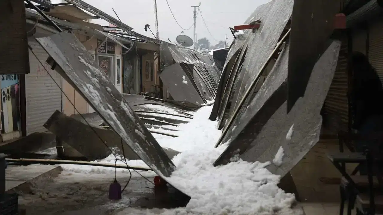 Meteoroloji’nin şiddetli yağış uyarısının ardından Hatay’da gece saatlerinden itibaren kar yağışı etkisini artırdı. Kent genelinde beyaz örtü oluşurken, Antakya ilçesi eski otogar mevkiinde bulunan prefabrik çarşıda tehlikeli anlar yaşandı.