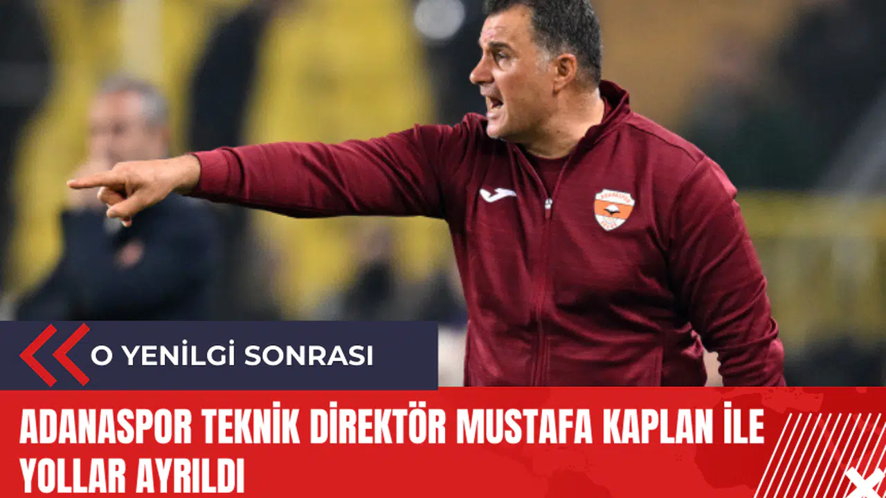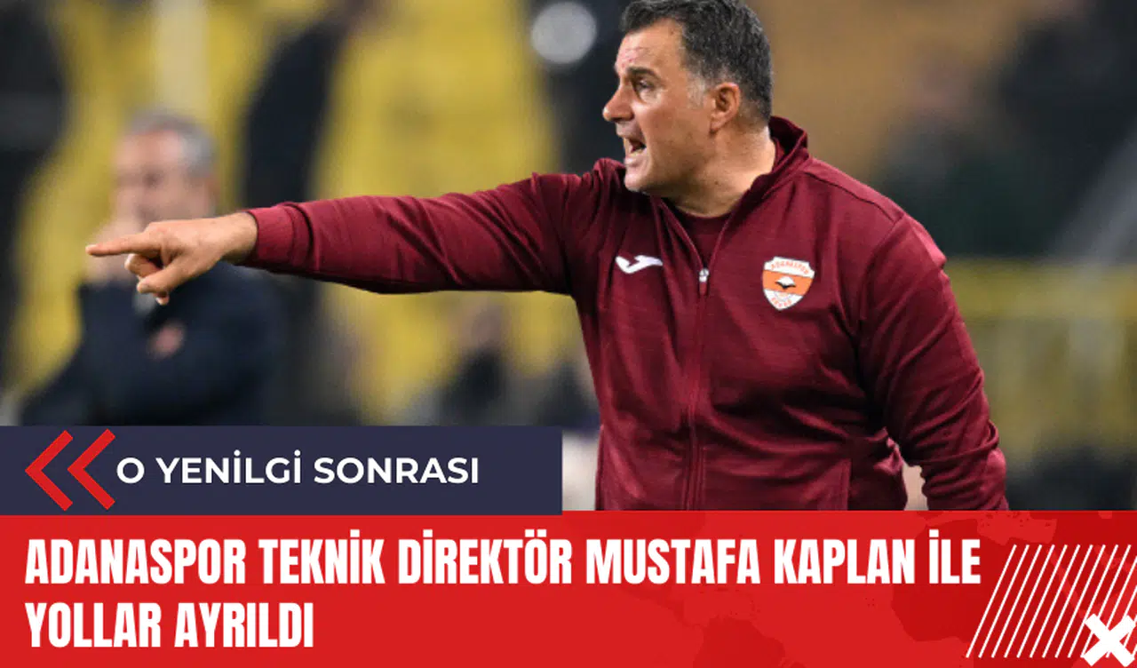 Futbol 1. Lig temsilcisi Adanaspor, Ziraat Türkiye Kupası'nda Fenerbahçe'ye 6-0 mağlup olduktan sonra teknik direktör Mustafa Kaplan ile yollarını ayırdı. Turuncu beyazlı kulübün sosyal medya hesabından yapılan açıklamada, 'Teknik Direktör Mustafa Kaplan ile karşılıklı anlaşarak yollarımızı ayırmış bulunmaktayız. Mustafa Kaplan ve ekibine bugüne kadar vermiş oldukları emek için teşekkür eder, bundan sonraki hayatlarında başarılar dileriz' ifadelerine yer verildi.
